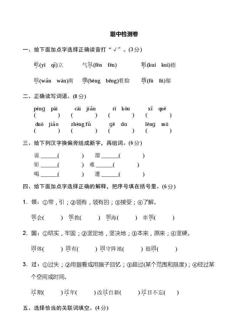 25年秋六上语文期中精选卷(3)(附参考答案)