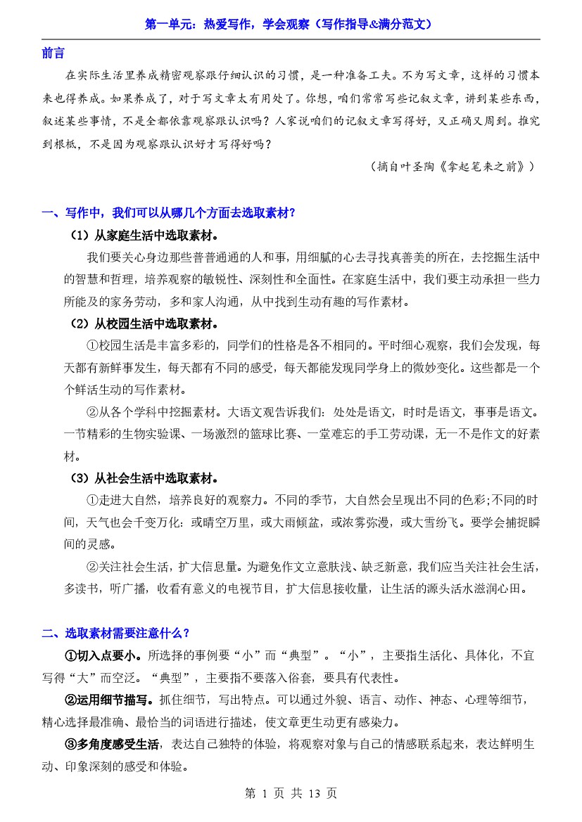 【作文】七年级上册语文专题13:如何突出中心(课文回顾+要点技巧+课内写作范文)