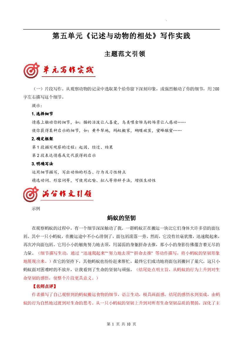 【作文】七年级上册语文专题20 单元作文导写(细节描写技巧指导)-【同步作文课】
