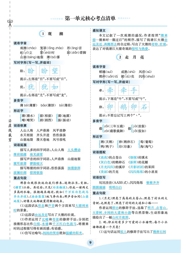 四年级语文上册1-8单元考点总结(8个必背知识点)