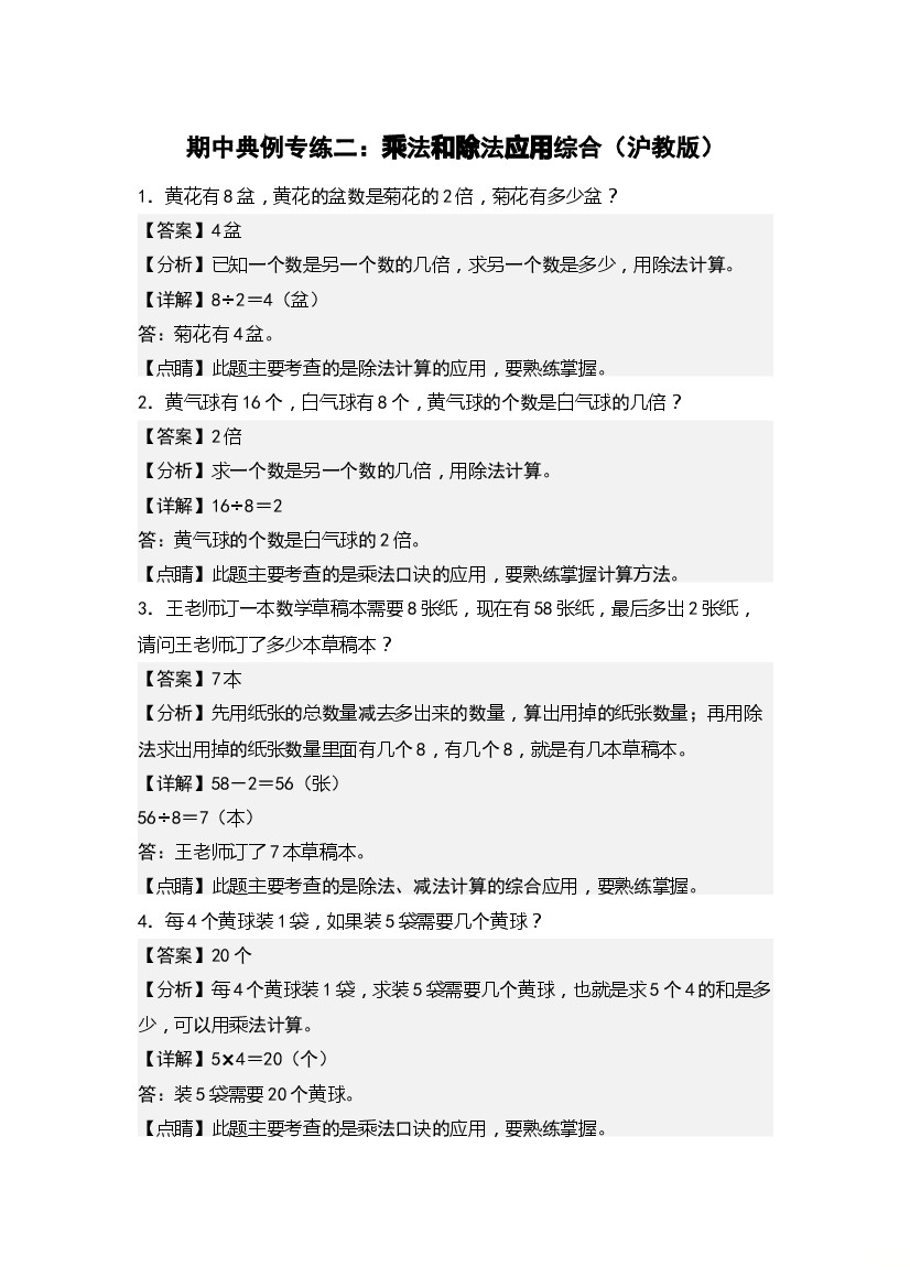 25年秋【二上数学】期中典例专练二:乘法和除法应用综合-(学生版)沪教版