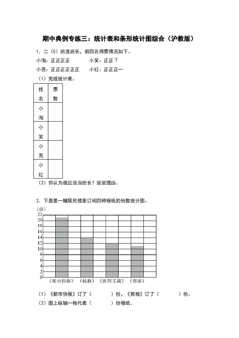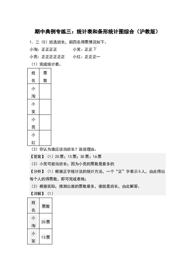 25年秋【二上数学】期中典例专练三:统计表和条形统计图综合-(教师版)沪教版