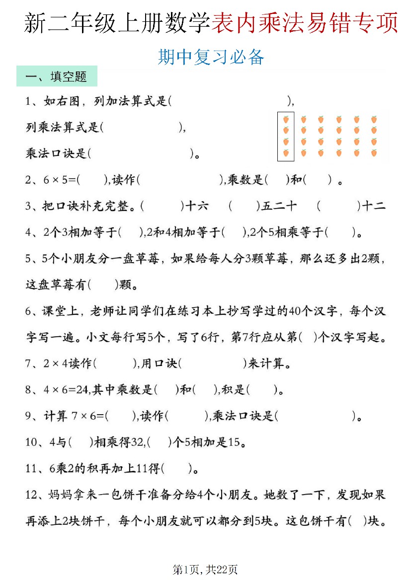 二年级(上)数学 表内乘法易错专项(期中复习必备)