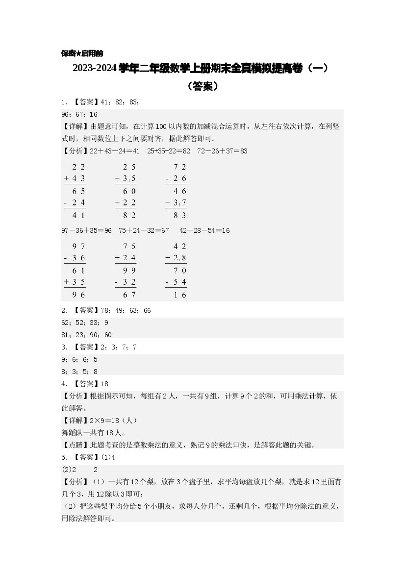 二年级数学上册期末全真模拟提高卷(一)(A4版)(北师大版)