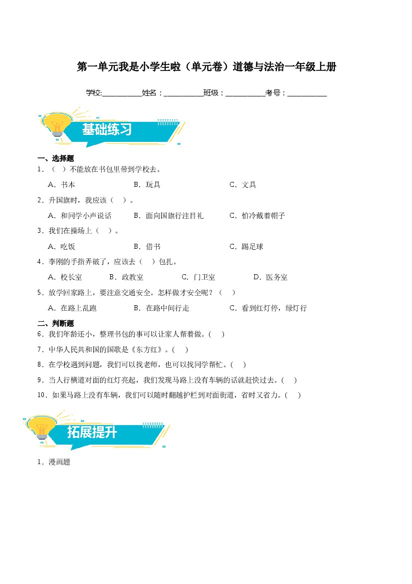 第一单元我是小学生啦(单元卷)