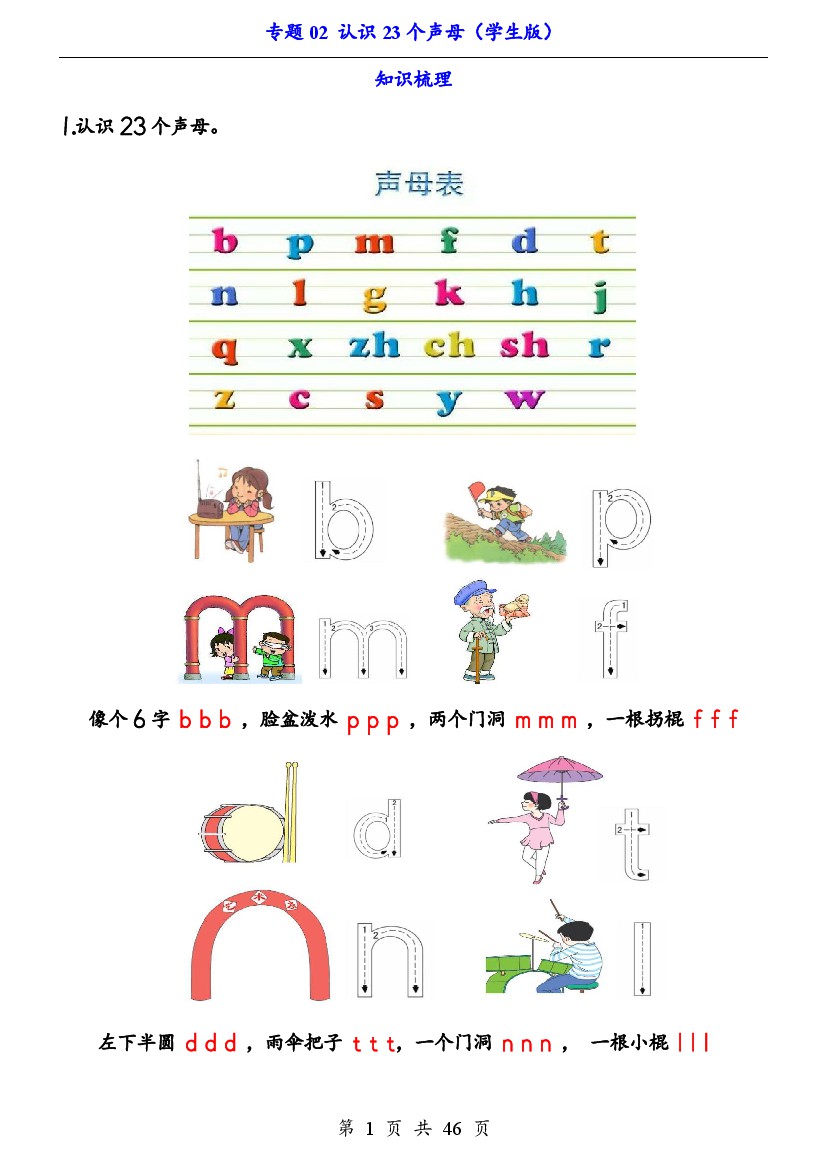 25新【一上语文】拼音专题-专题02 认识23个声母(知识+训练)