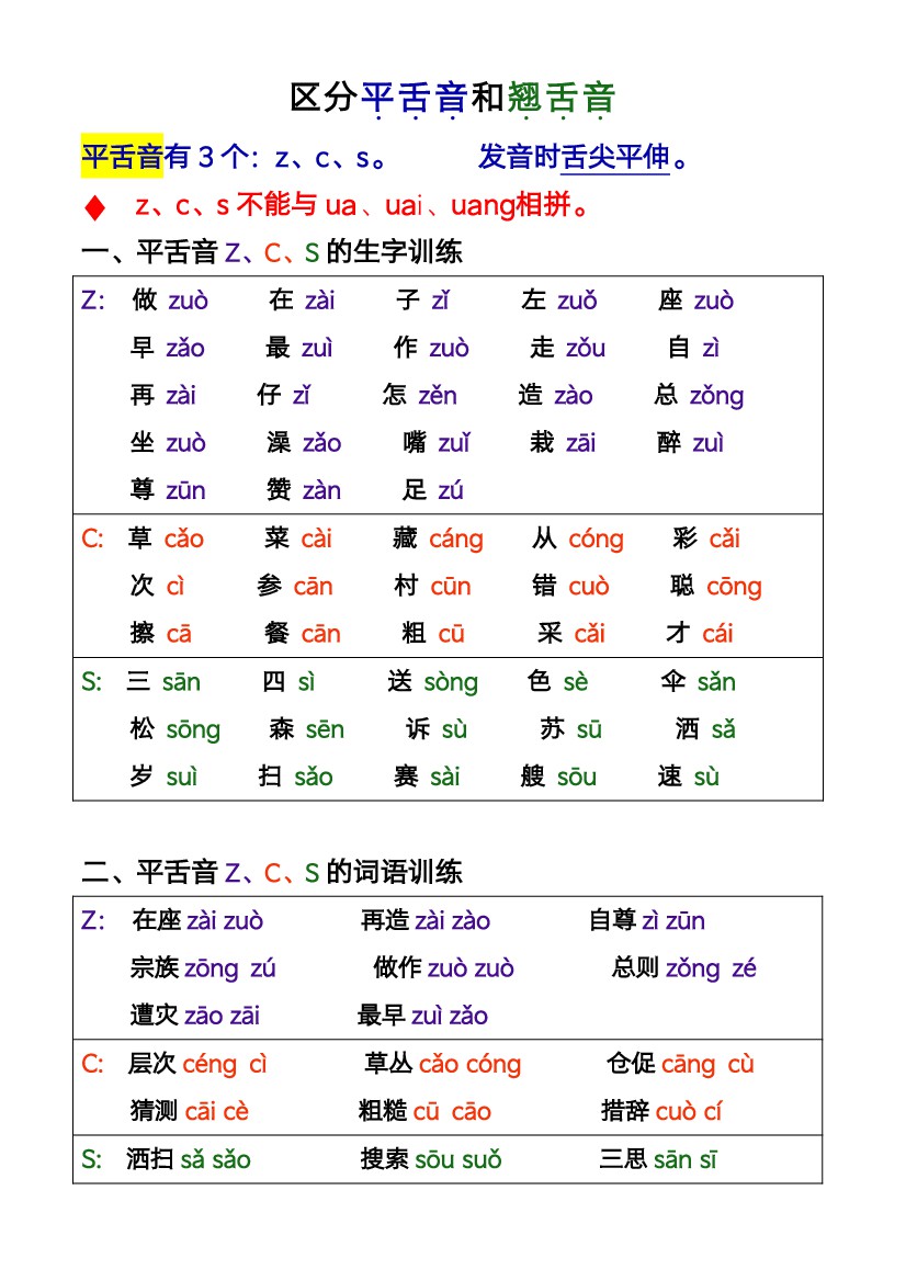 平舌音翘舌音区分