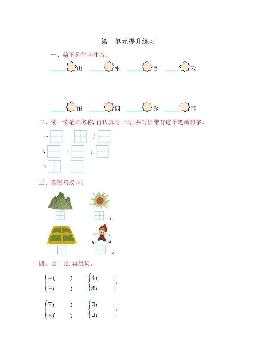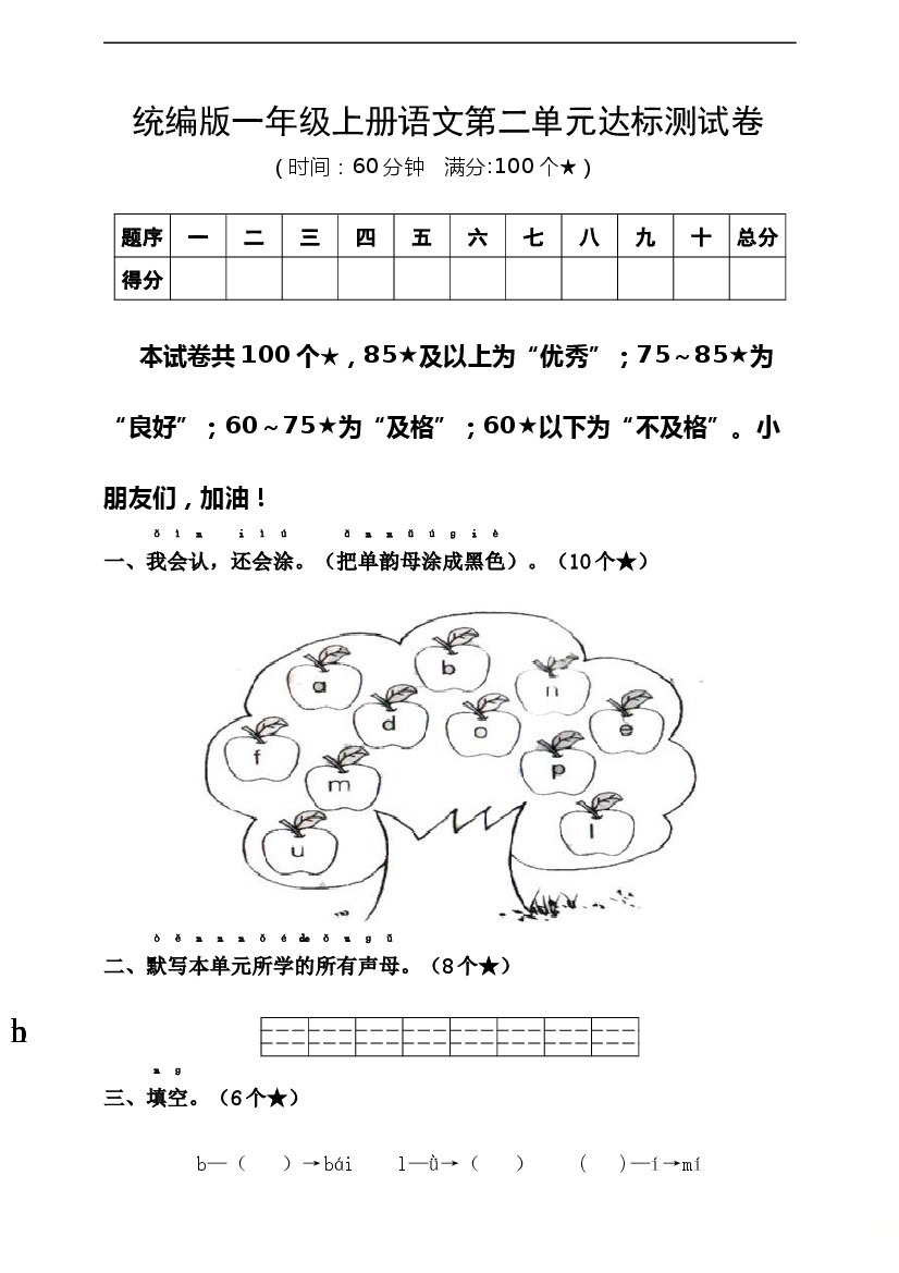 一年级上册语文第二单元 (单元测试)-(统编版)