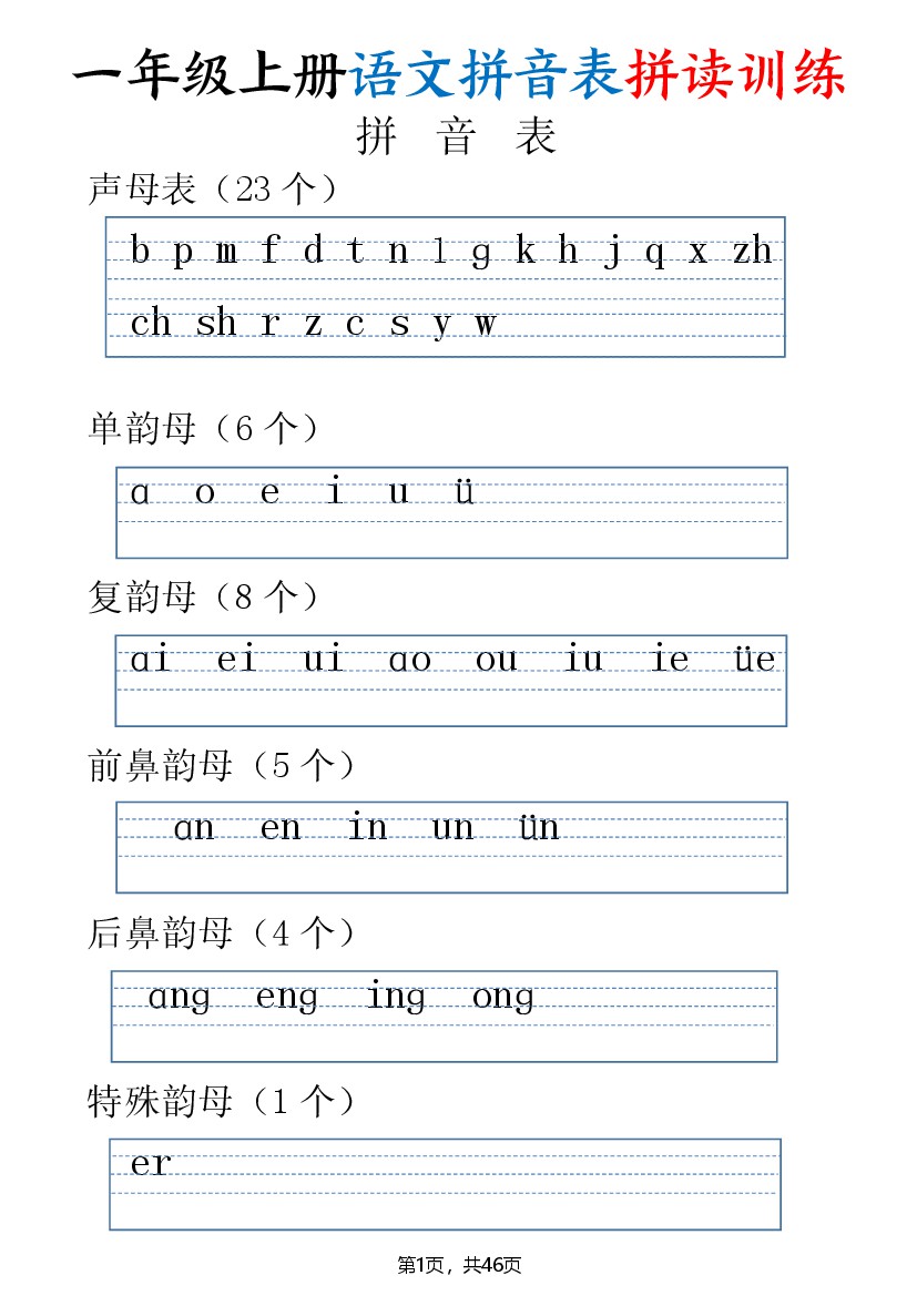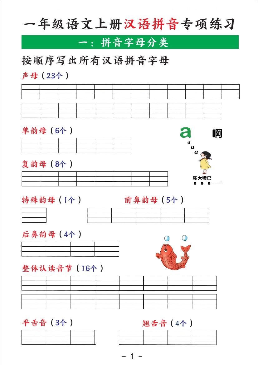 25新【一上语文】拼音专题-专题01 认识6个单韵母(知识+训练)