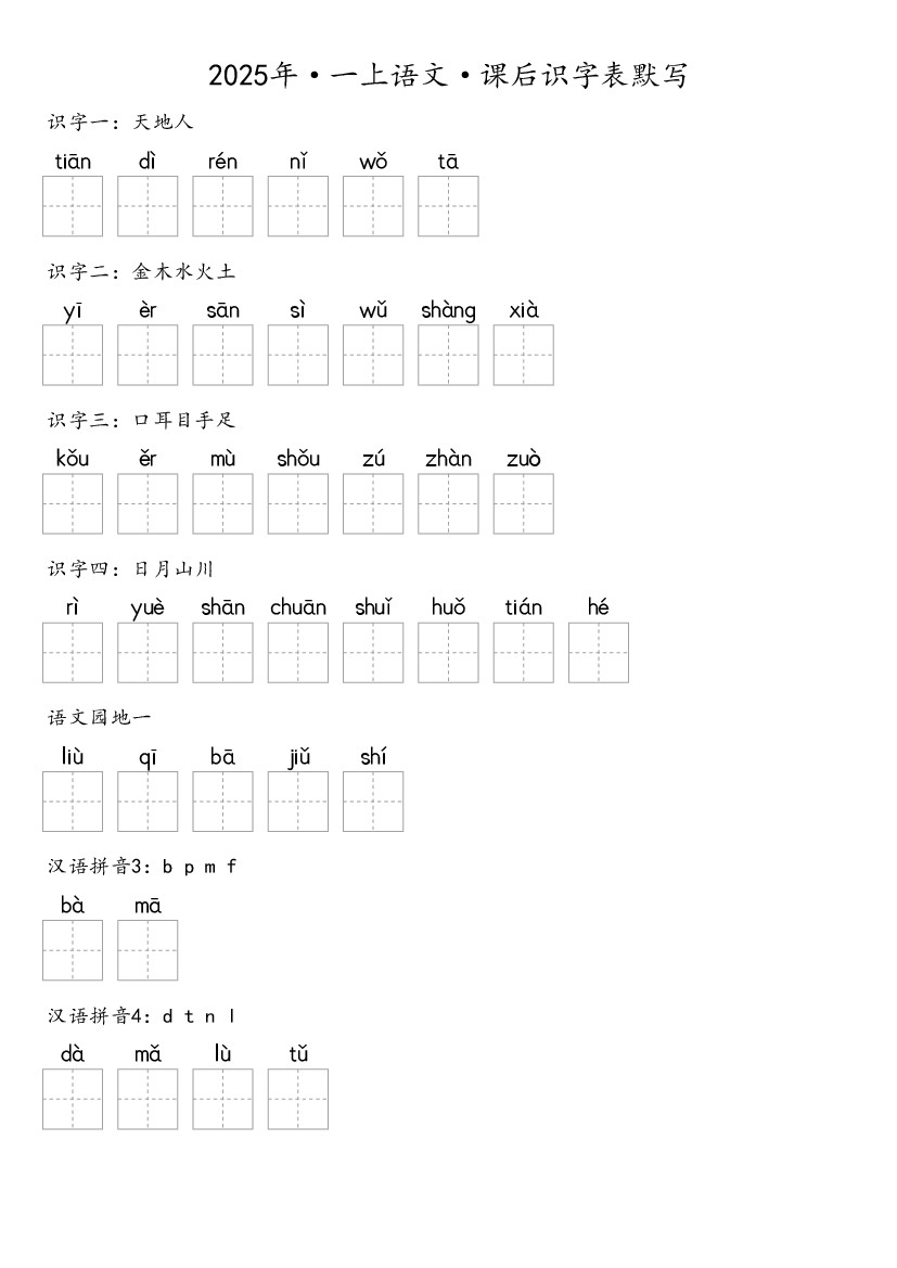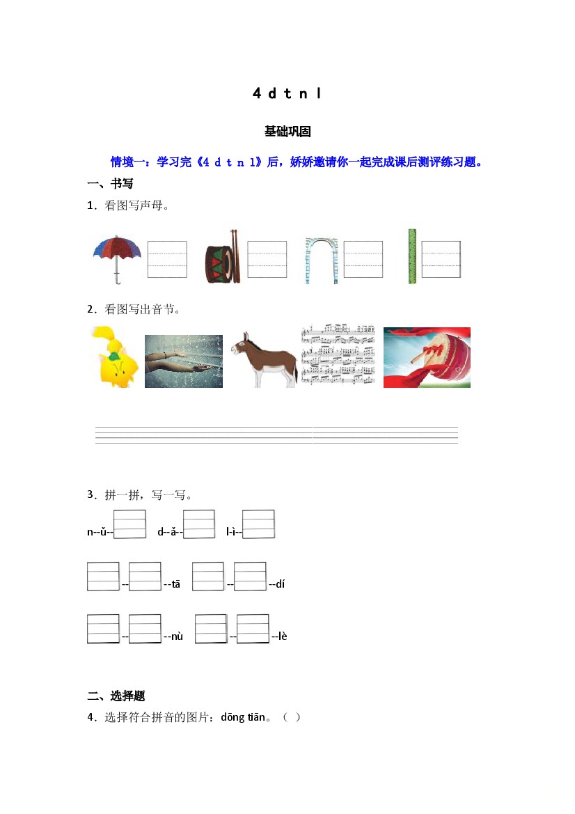 4 d t n l 同步分层作业-一年级上册语文(统编版)