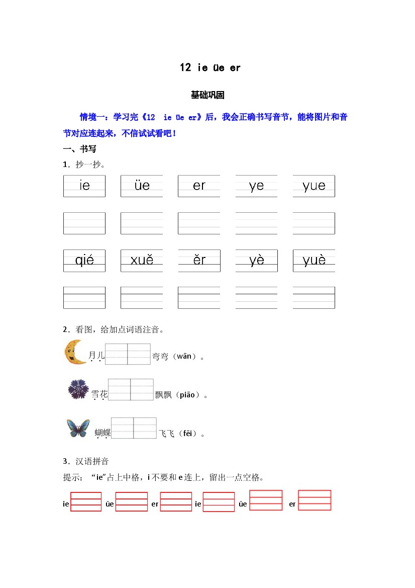 12 ie üe er 同步分层作业-一年级上册语文(统编版)