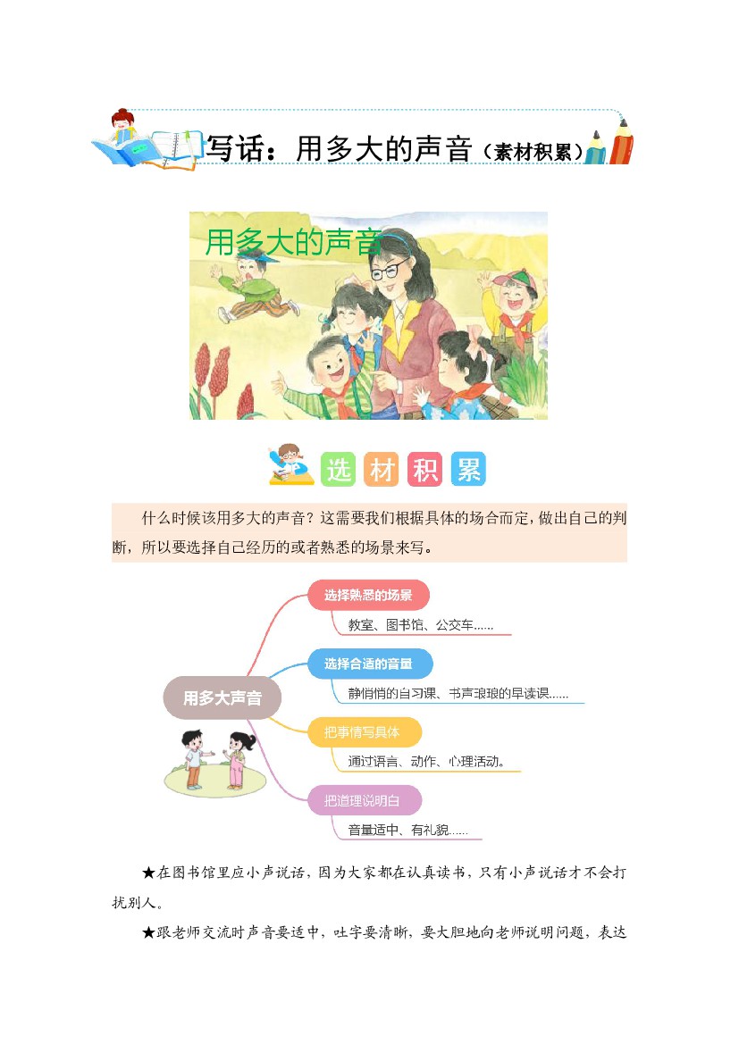 一年级(上)语文 第七单元写话:用多大的声音(素材积累)《统编版》