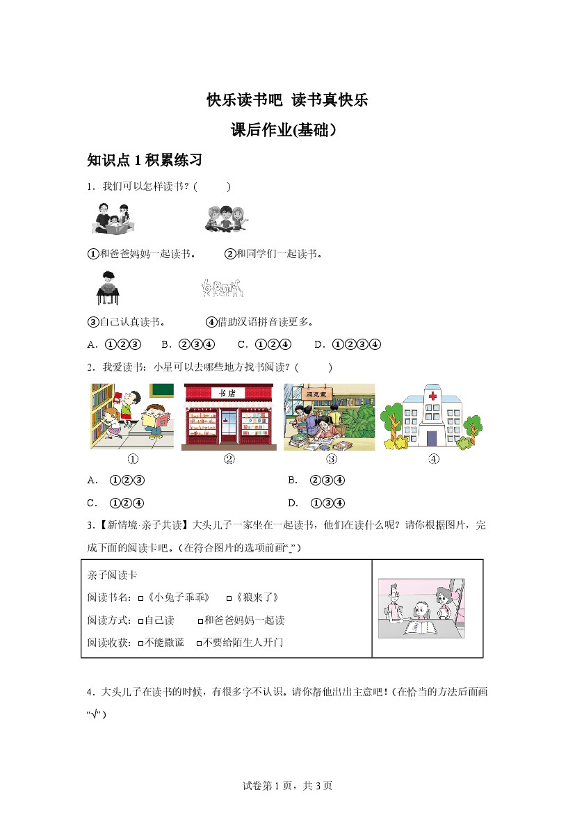25新一年级上册语文快乐读书吧 读书真快乐课后作业(基础)