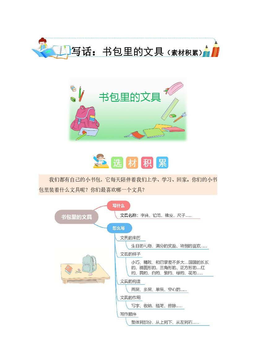 一年级(上)语文 第六单元写话:书包里的文具(素材积累)《统编版》