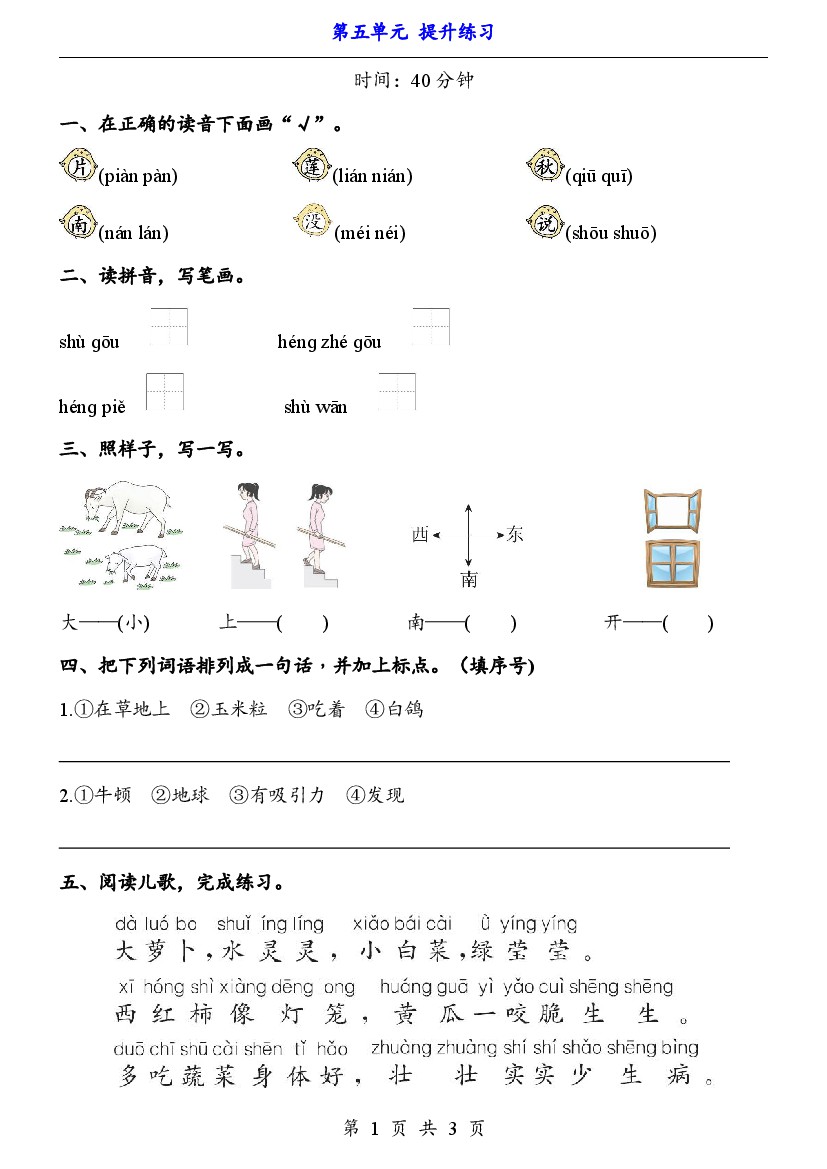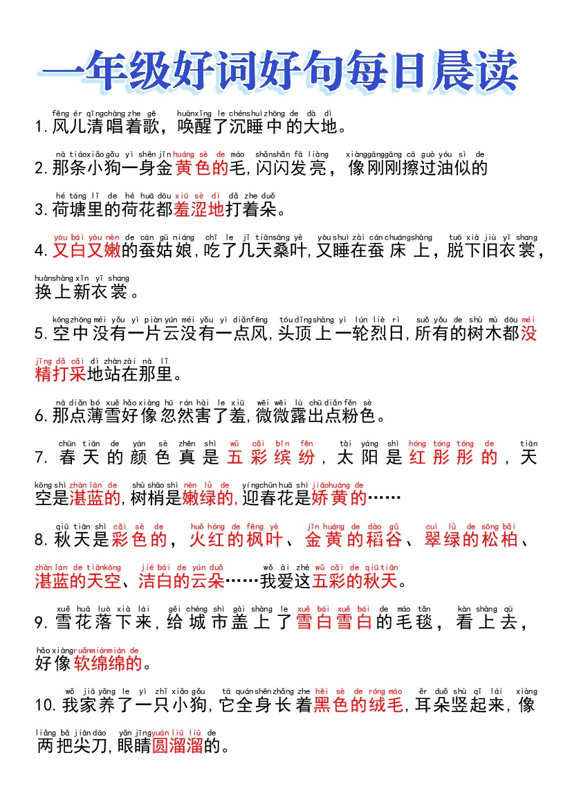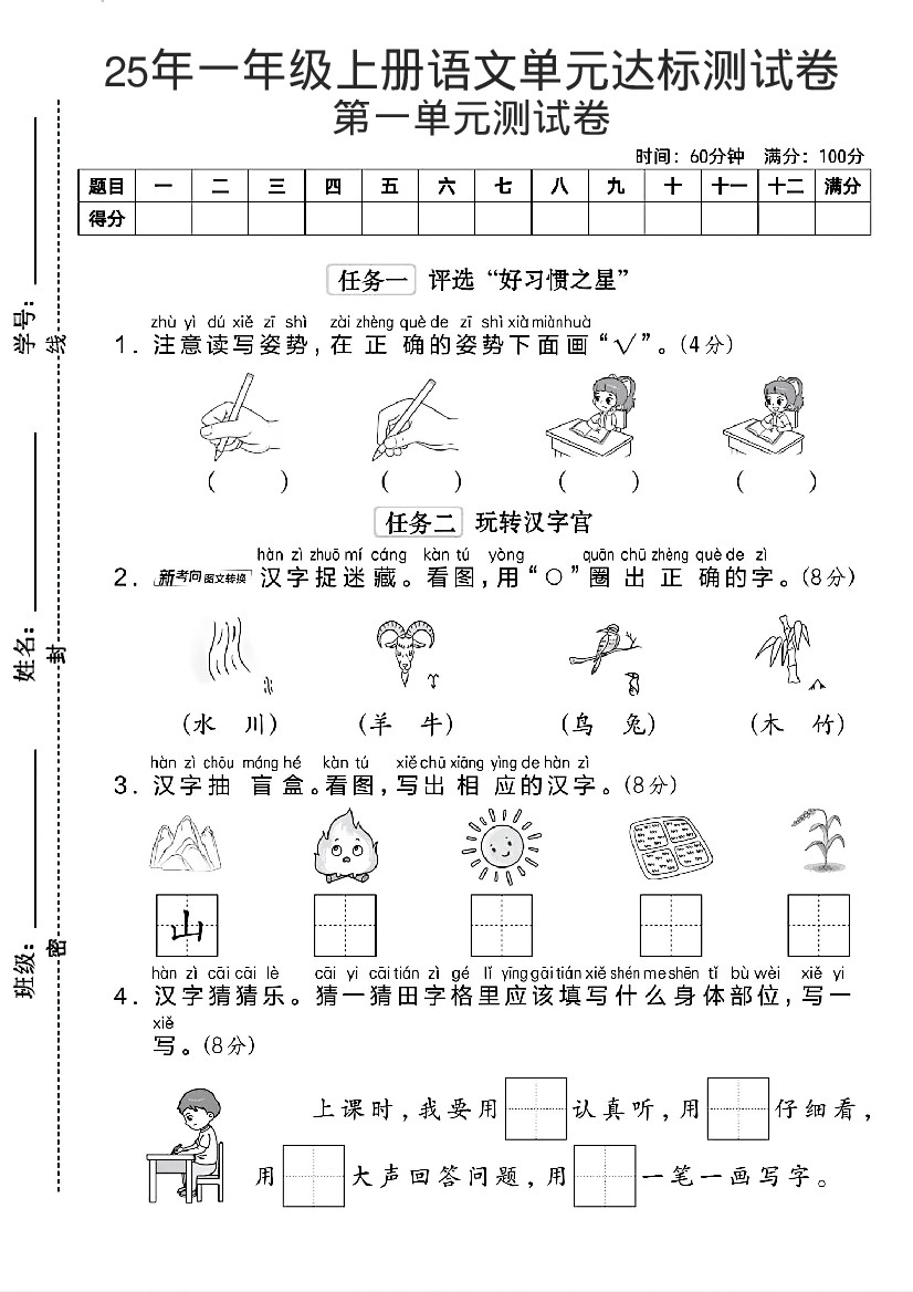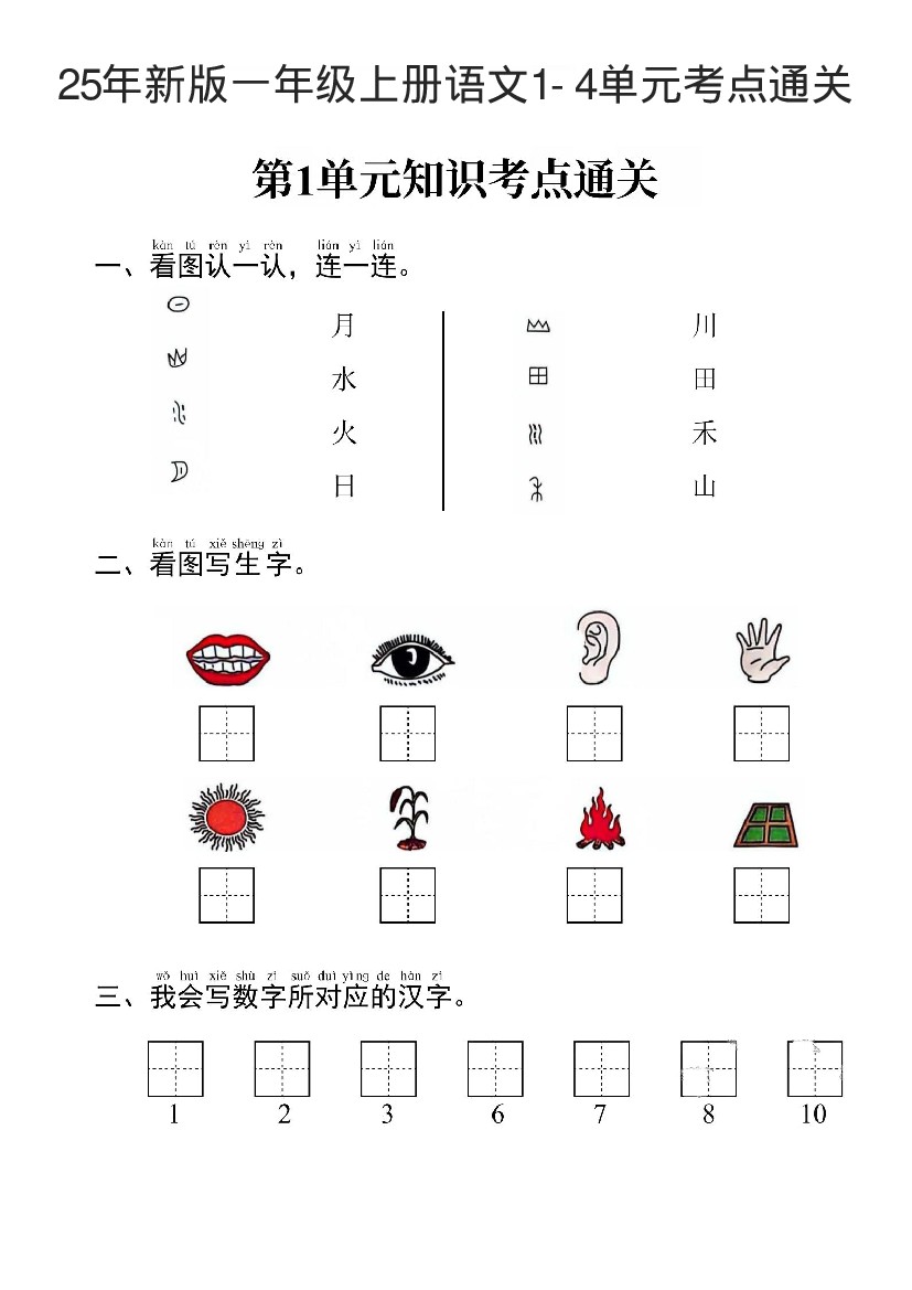 一上语文【期中复习知识点(1-4单元六大必背知识点(8页)】