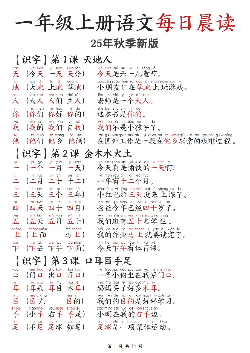 一年级上册语文第一课《我是中国人》15个知识点汇总