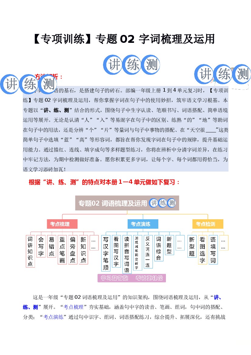 专题 02 字词梳理及运用(期中专项训练)一年级语文上学期(统编版·新教材)