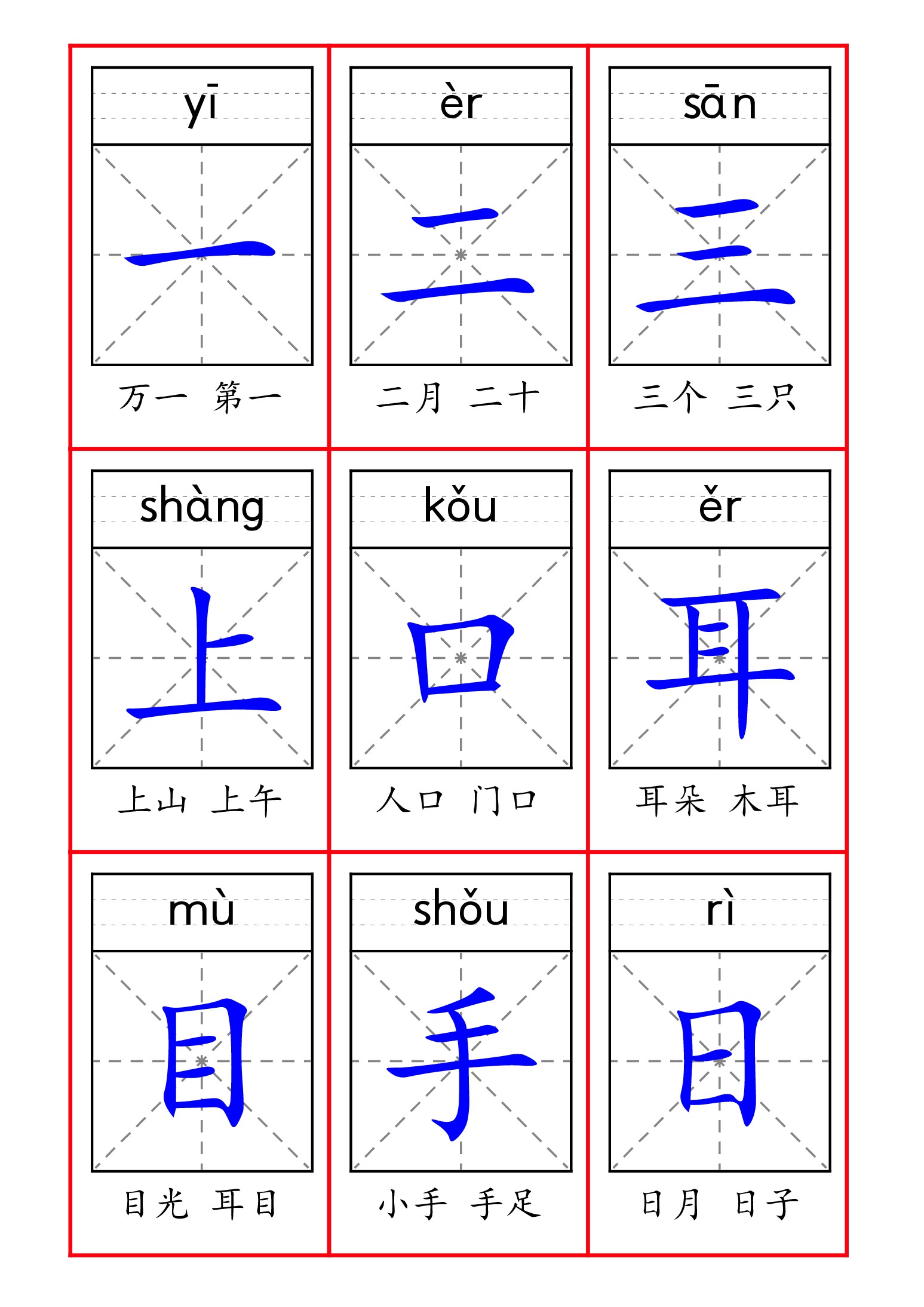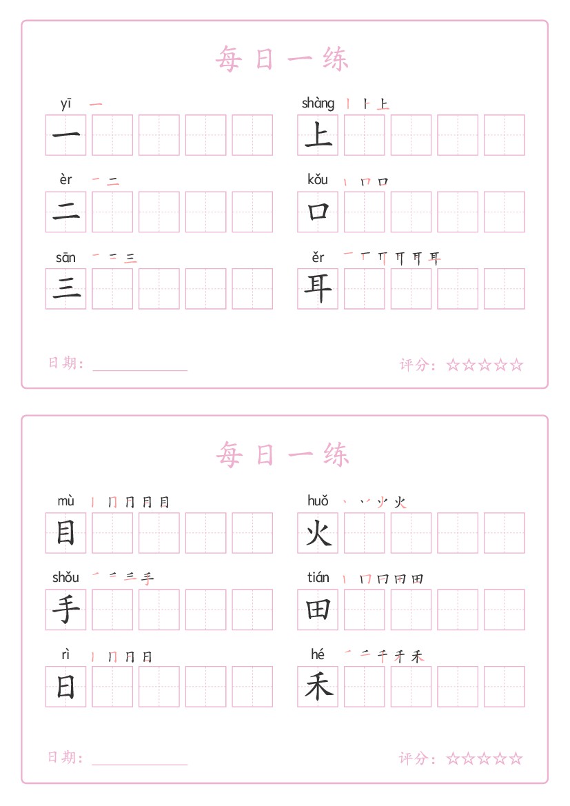 25秋一年级上册语文写字表每日一练字帖(5字版)9页