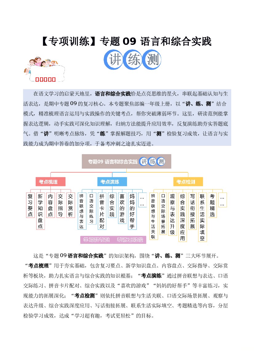 专题 09 语言和综合实践(期中专项训练)一年级语文上学期(统编版·新教材)