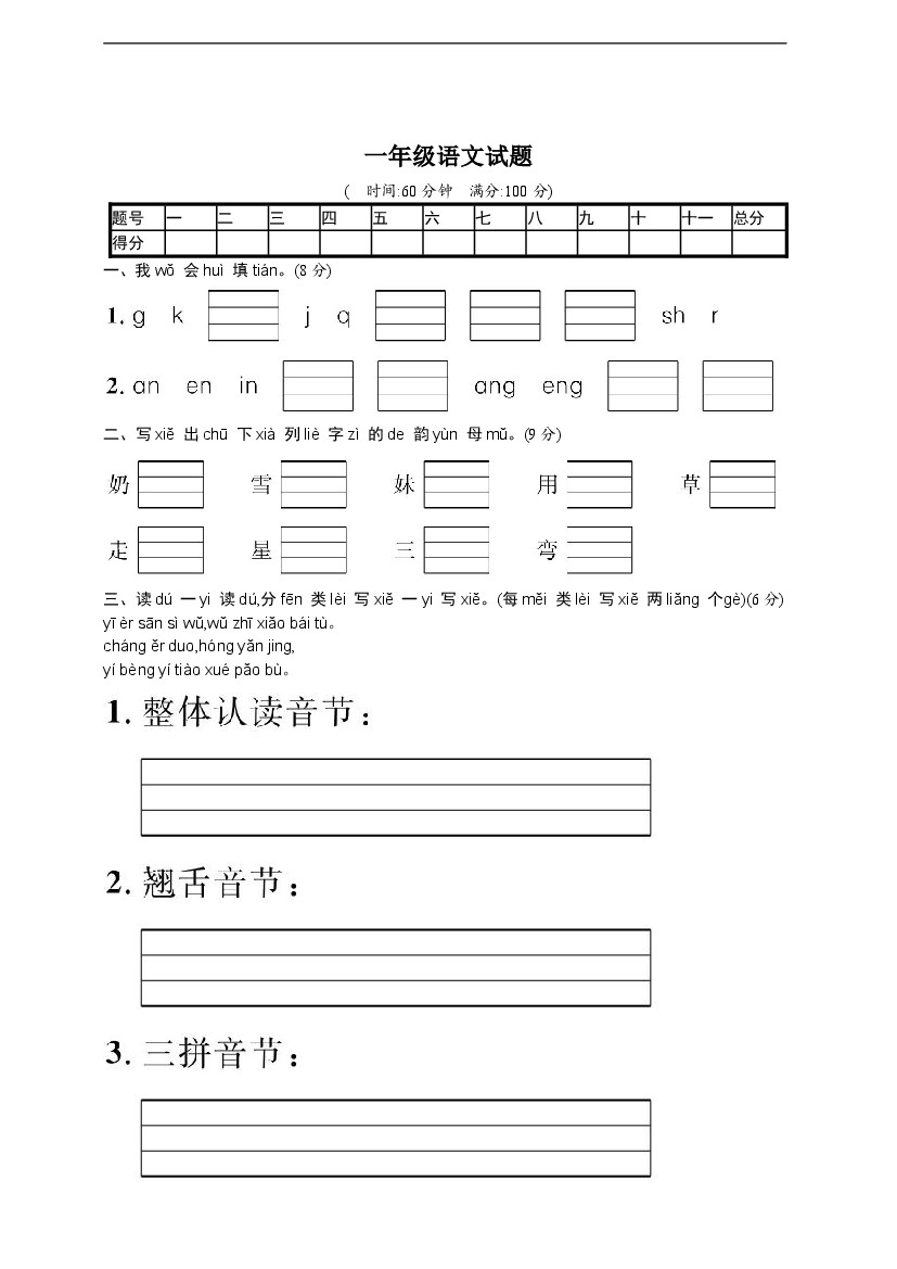 25学年一年级上册语文期末综合检测卷(含答案5页)