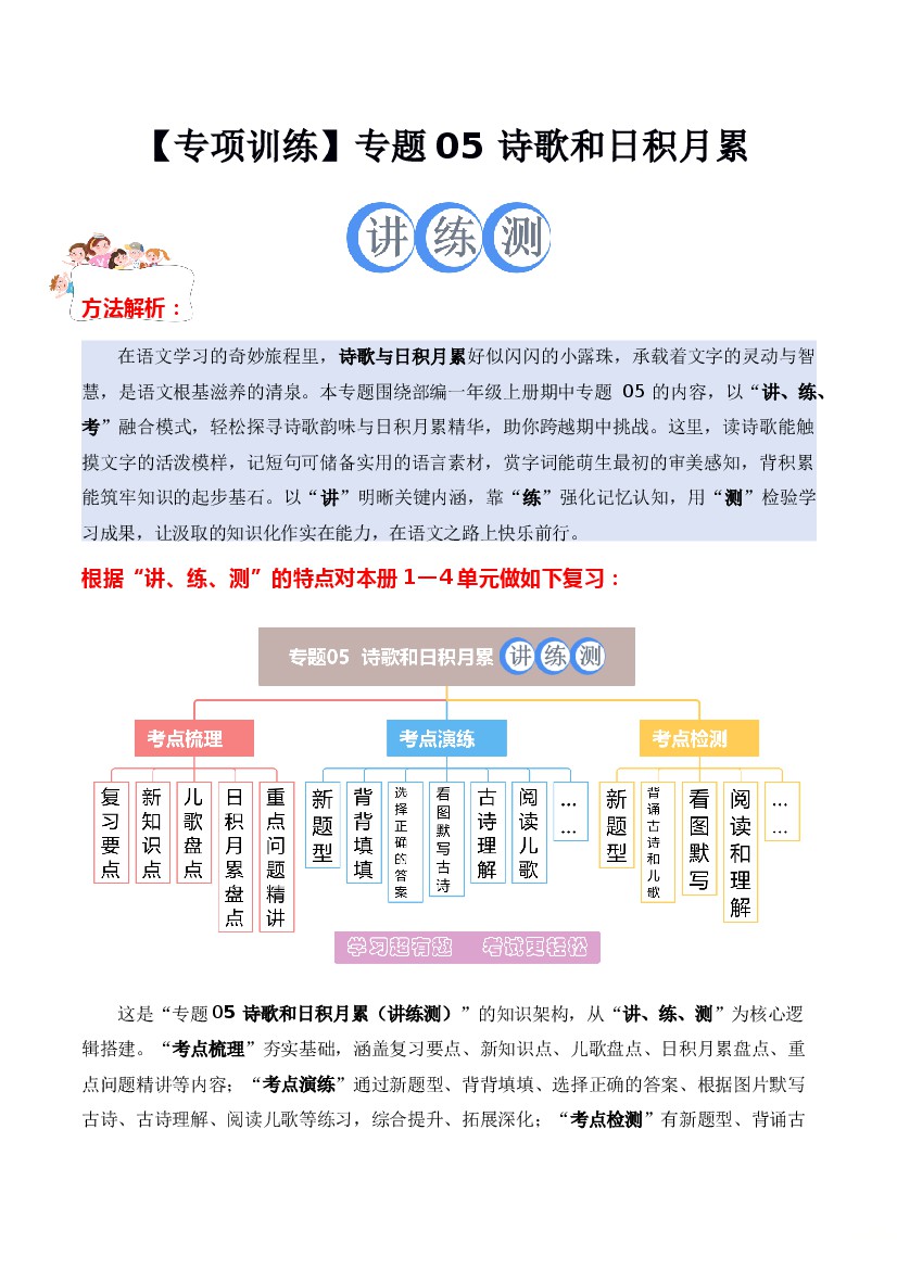 专题 05 诗歌和日积月累(期中专项训练)一年级语文上学期(统编版·新教材)