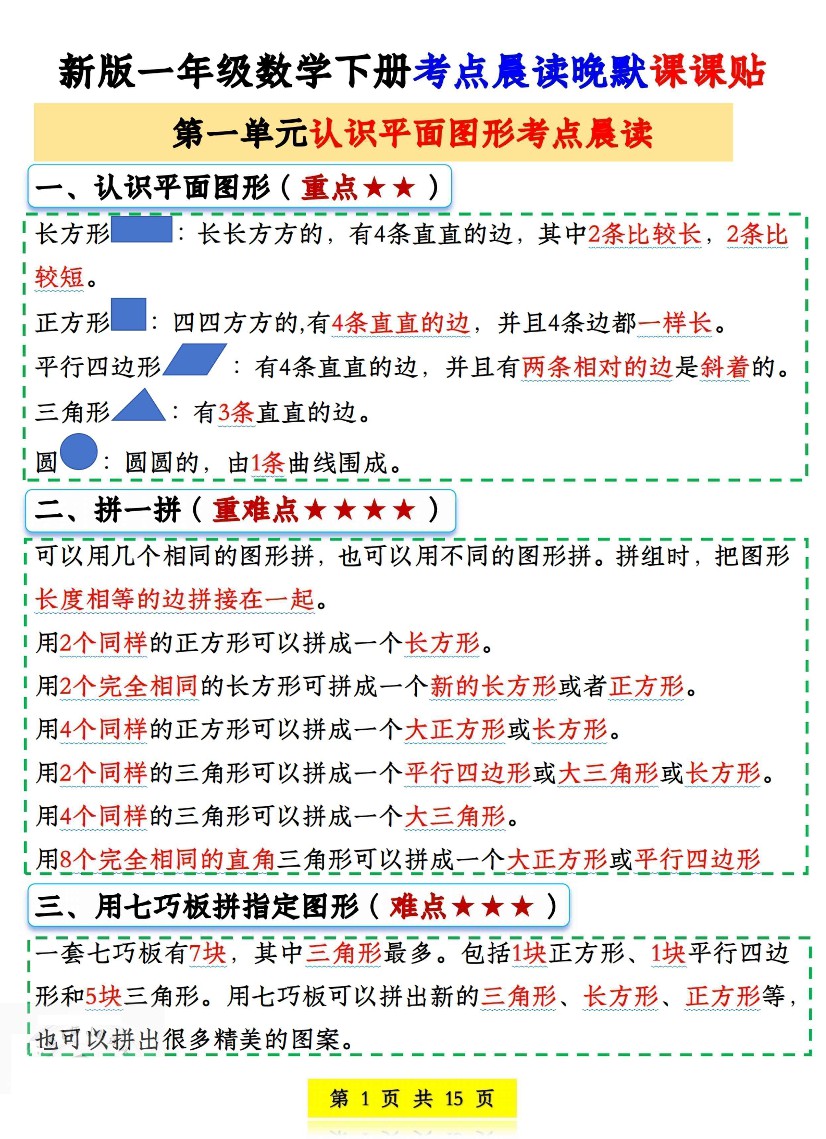 【专项】数学考点《晨读晚默课课贴》