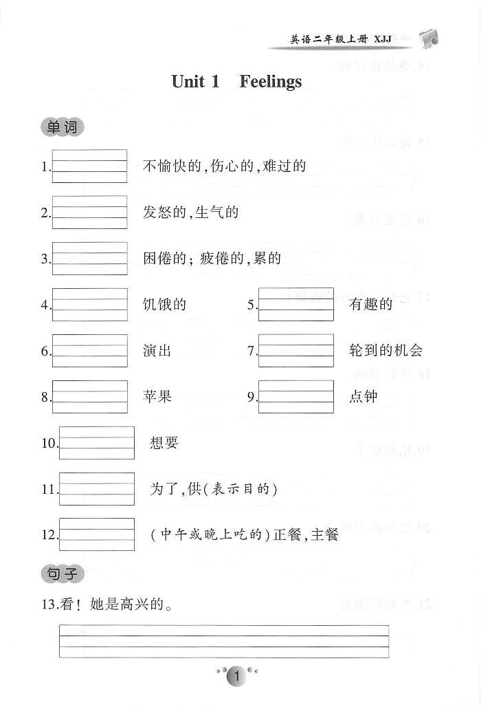 二年级上册【默写表】(牛津上海版、深圳版)(汉译英)
