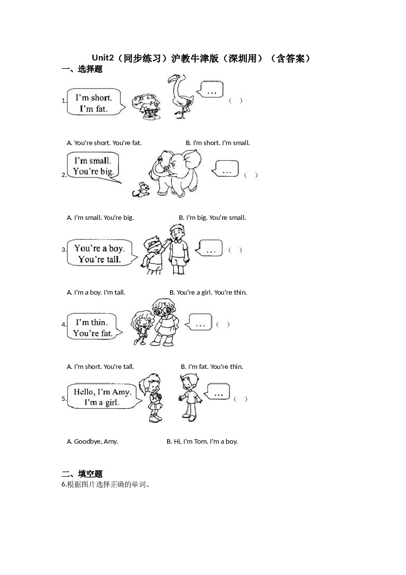 Unit 2 I'm Danny(同步练习)-二年级英语上册-沪教牛津版(深圳用)(含答案)