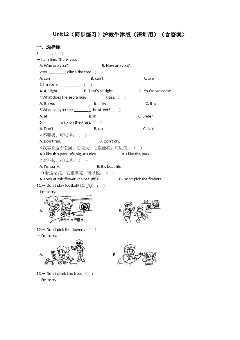 Unit 12 In the street(同步练习)-二年级英语上册-沪教牛津版(深圳用)(含答案)