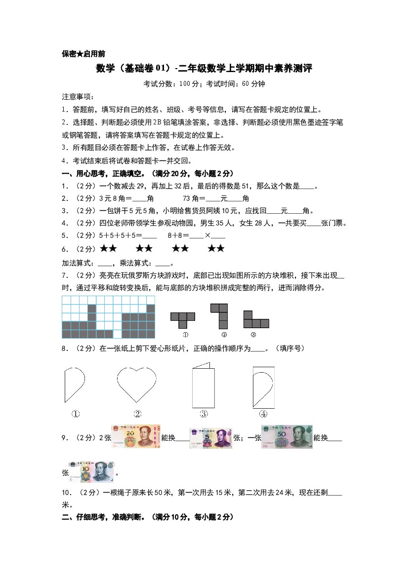 25年秋二年级上册(北师大版)数学(基础卷01)(含答案)