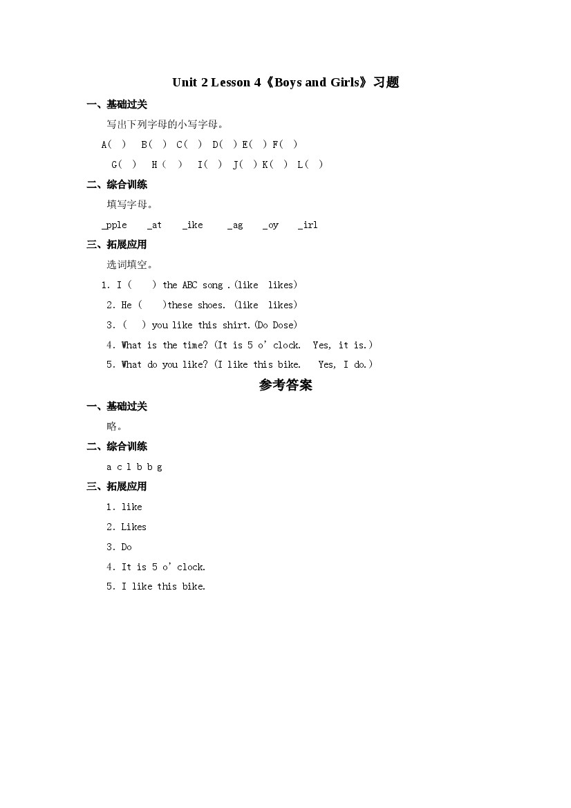 25年秋【二上英语】【人教新起点】BoysandGirls习题第4课时