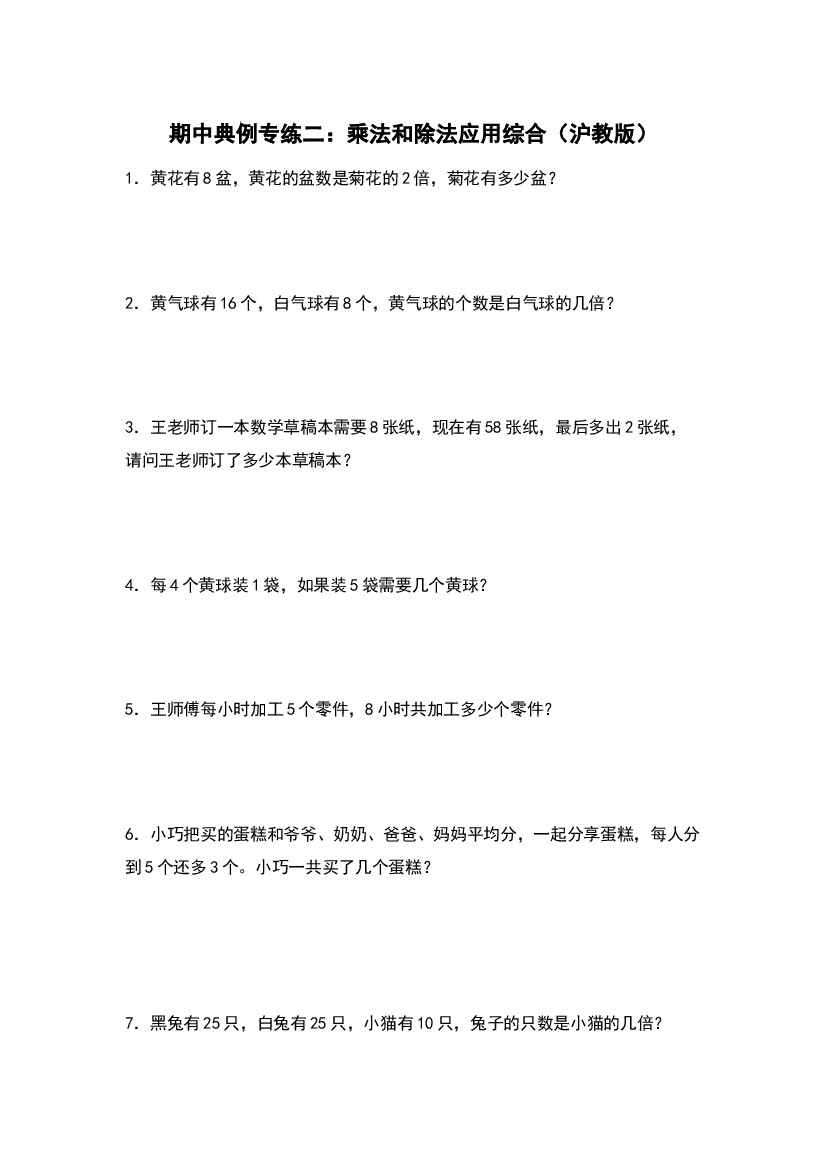 25年秋【二上数学】期中典例专练二:乘法和除法应用综合-(学生版)沪教版