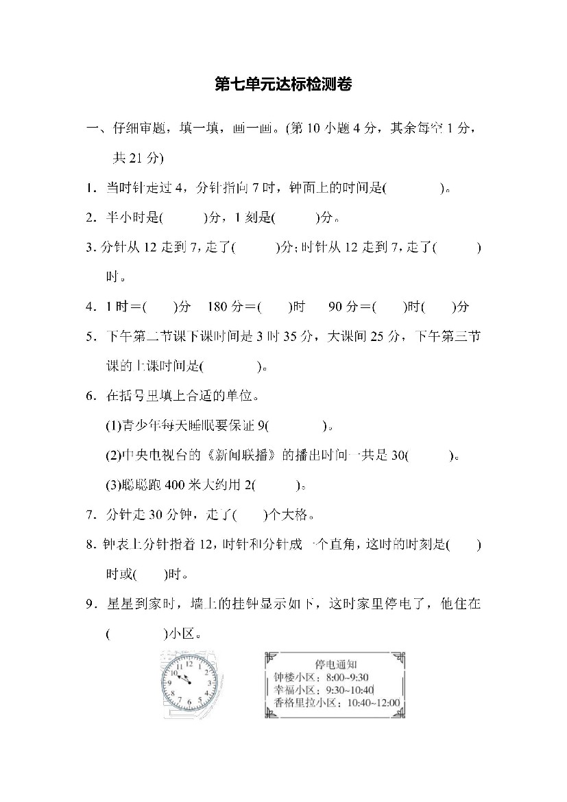 【人教】二上数学第7单元达标检测卷