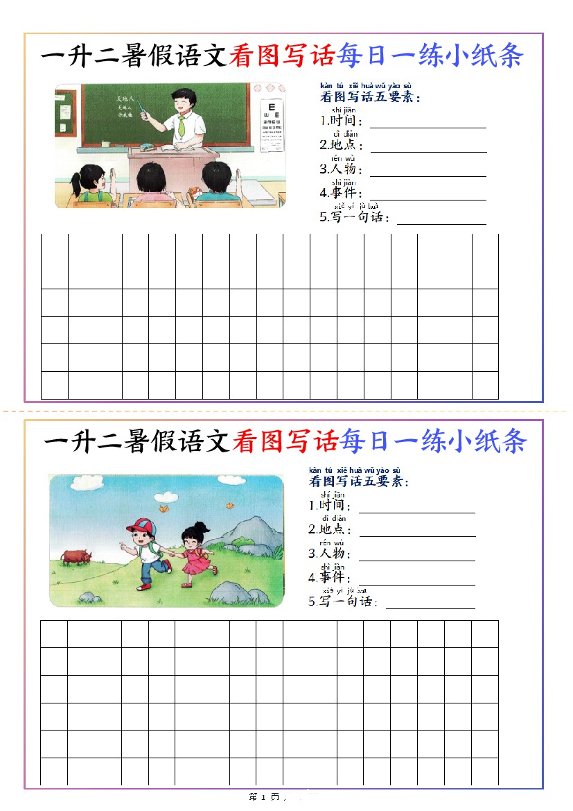 一升二暑假语文看图写话每日一练小纸条20天(含范文11页)