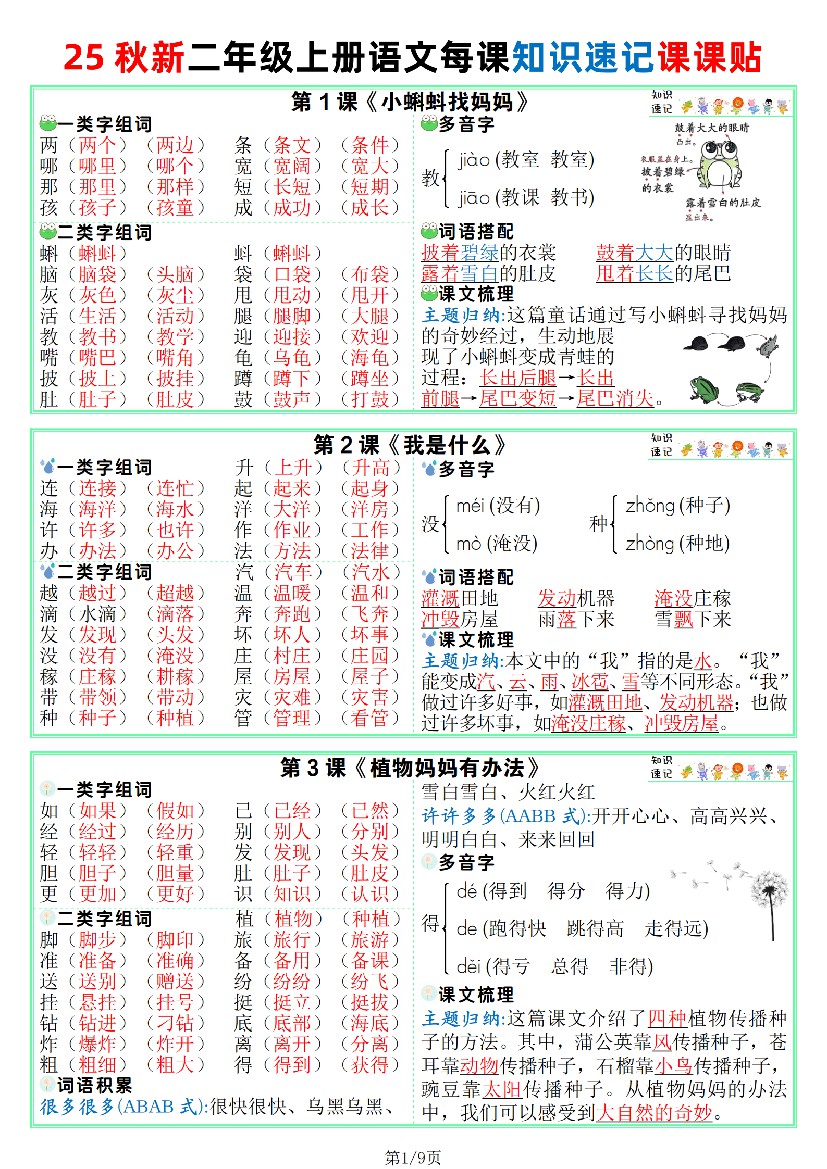 25秋新版二上语文课课贴【知识速记】9页