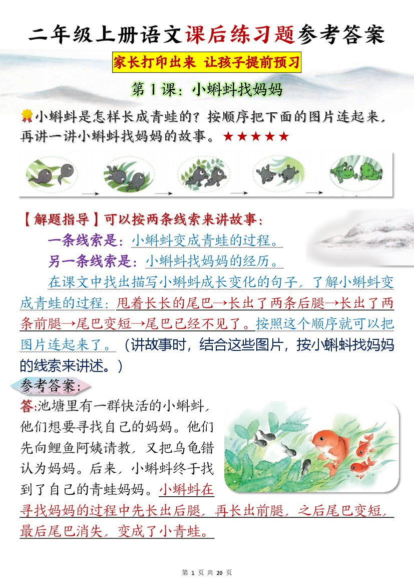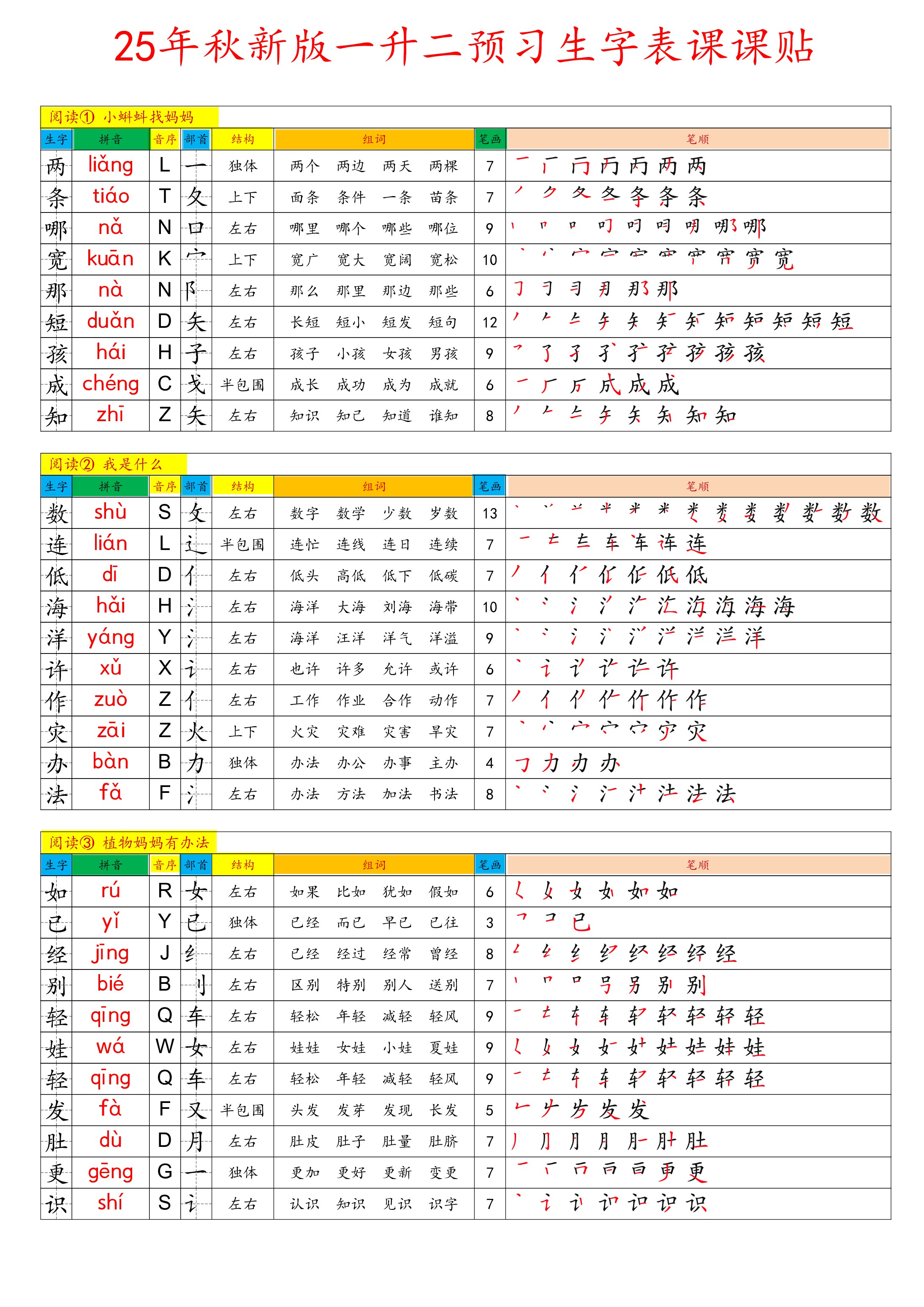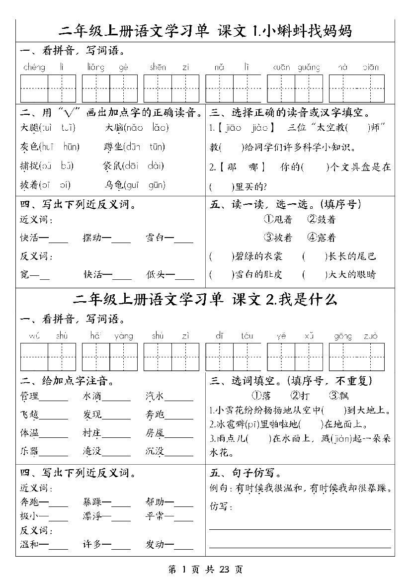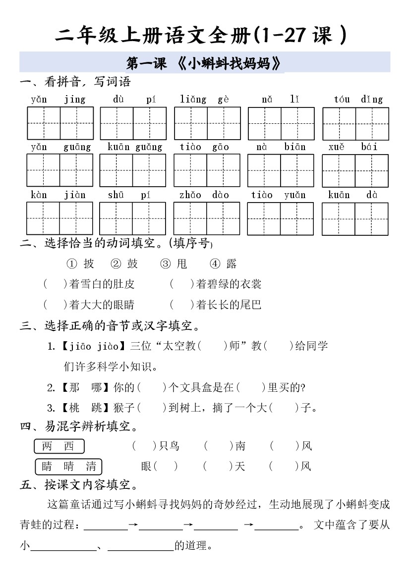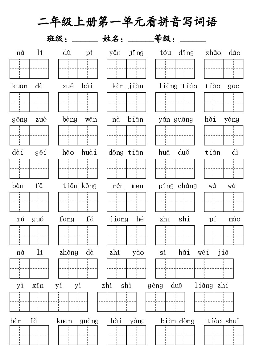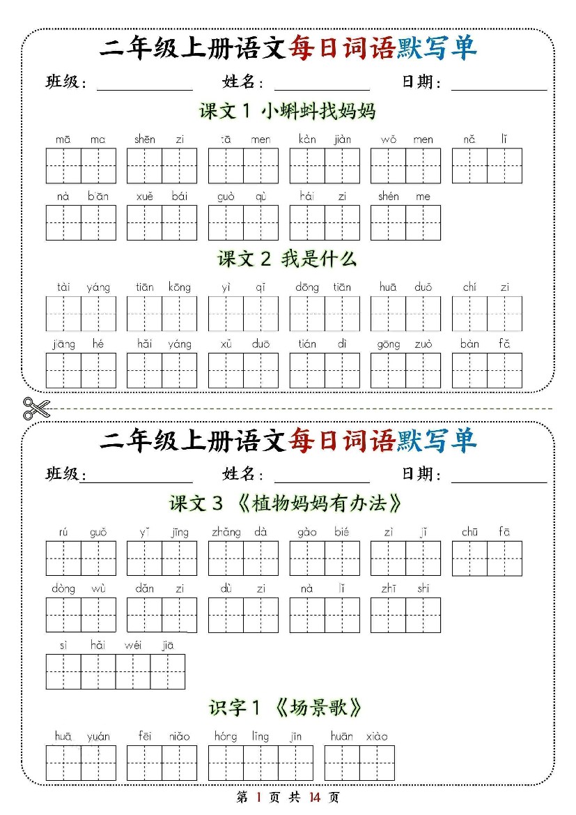新二年级上册语文《每日词语默写单》(含答案14页)