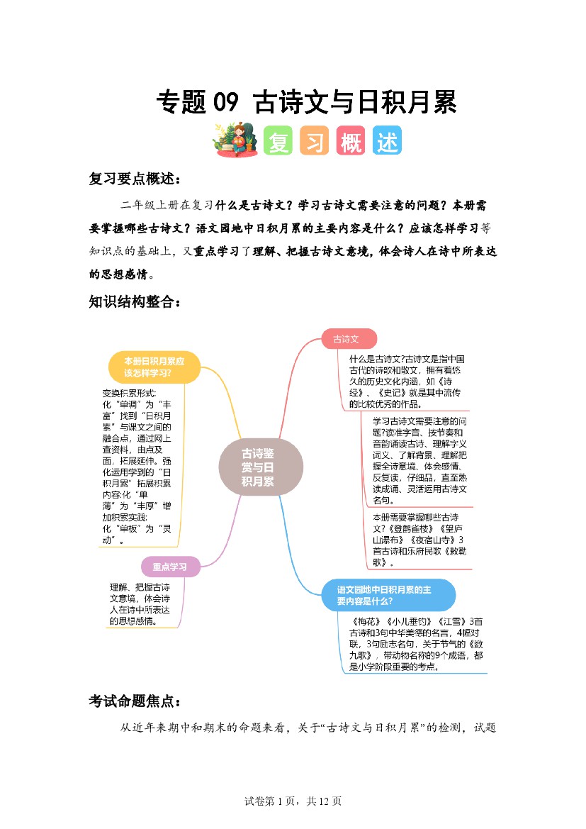 专题09 古诗文与日积月累-2025年二年级语文寒假专项提升(统编版)
