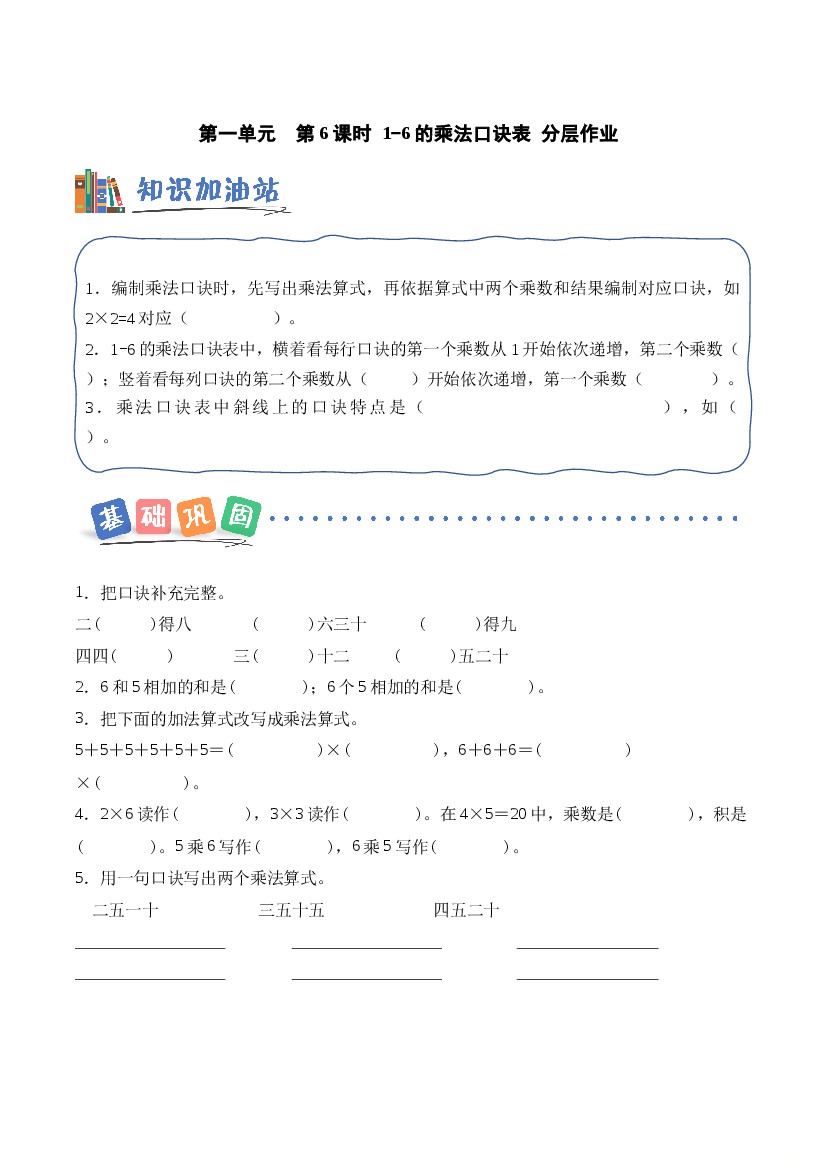 25年二上数学【苏教版】第一单元 第6课时 1-6的乘法口诀表(分层作业)