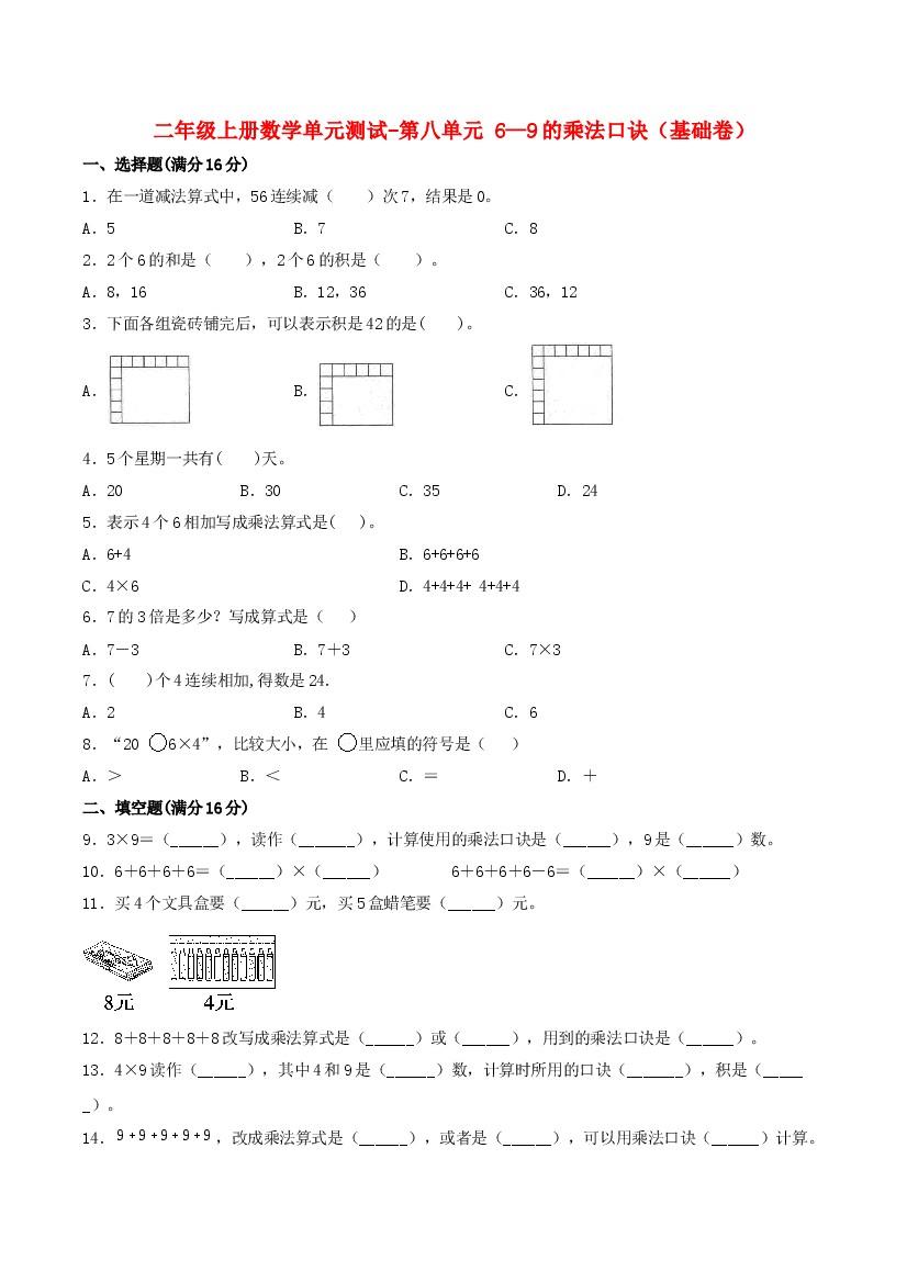 【分层训练】单元测试-第八单元 6—9的乘法口诀(基础卷+培优卷) 北师大版(含答案)