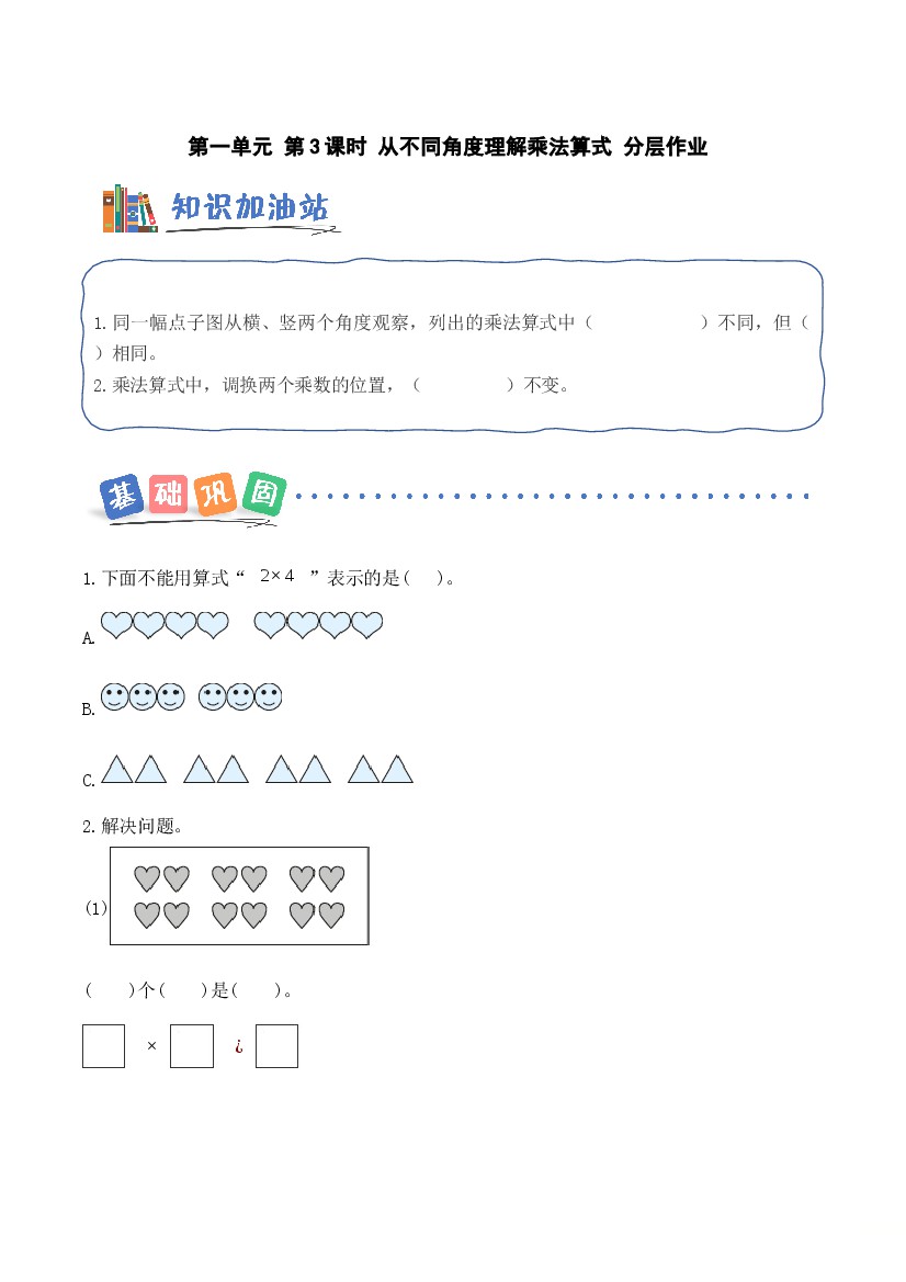 25年二上数学【苏教版】第一单元 第3课时 从不同角度理解乘法算式(分层作业)