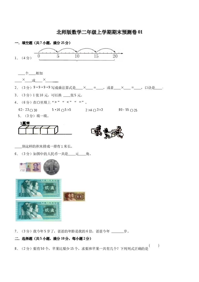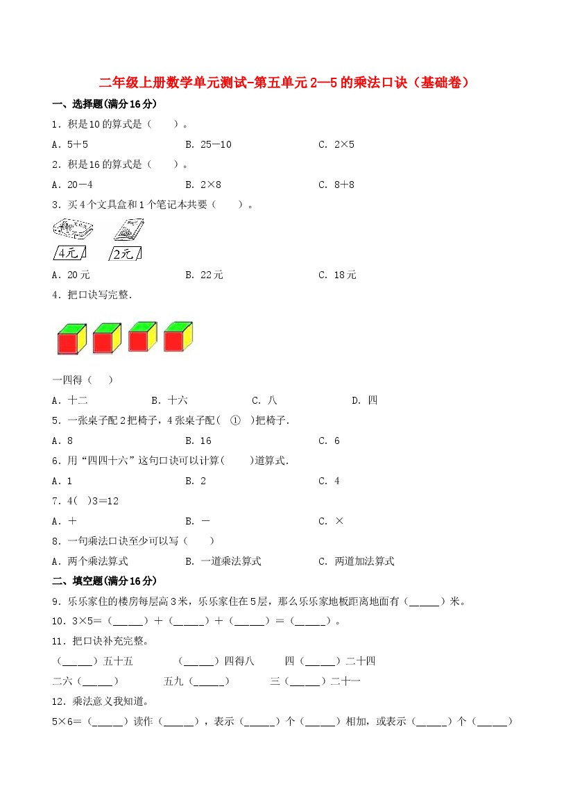【分层训练】单元测试-第五单元 2—5的乘法口诀(基础卷+培优卷) 北师大版(含答案)