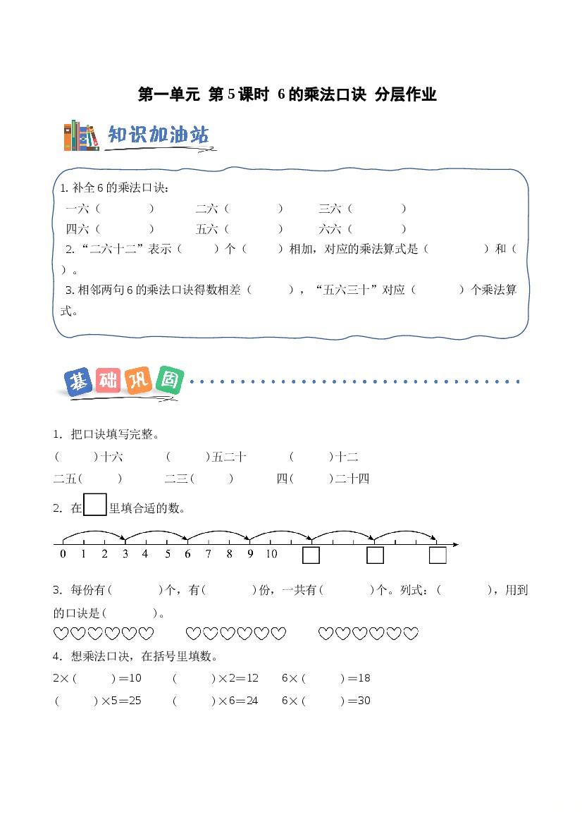 25年二上数学【苏教版】第一单元 第5课时 6的乘法口诀(分层作业)
