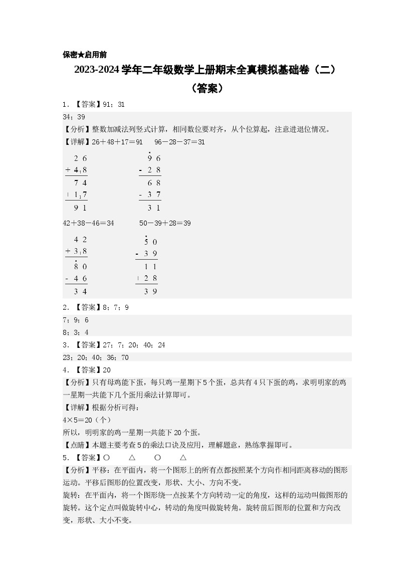 二年级数学上册期末全真模拟基础卷(二)(答案)(北师大版)