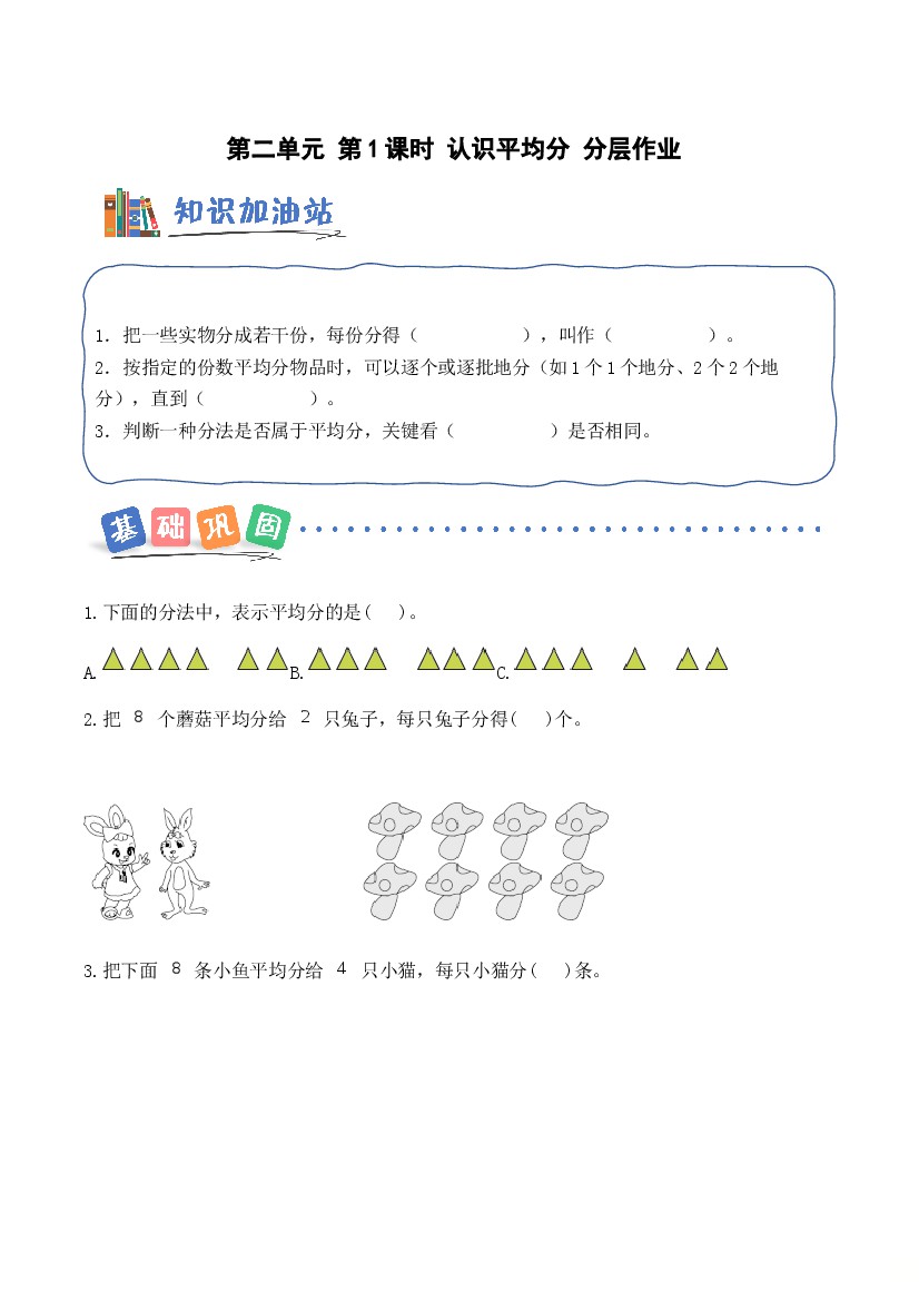 25年二上数学【苏教版】第二单元 第1课时 认识平均分(分层作业)