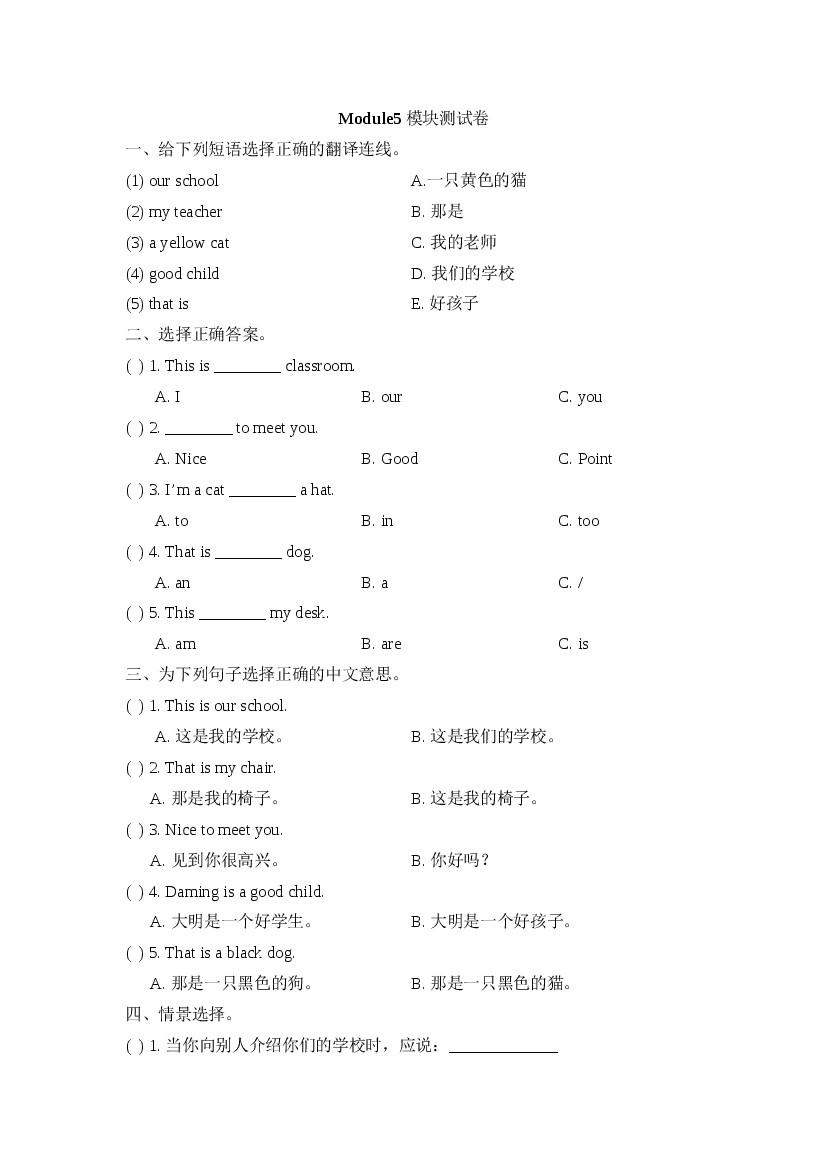 二年级上册外研一起Module5_模块测试卷