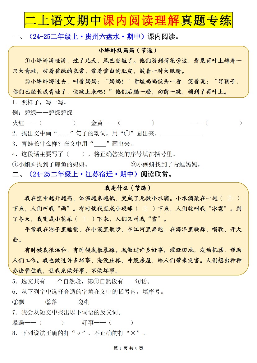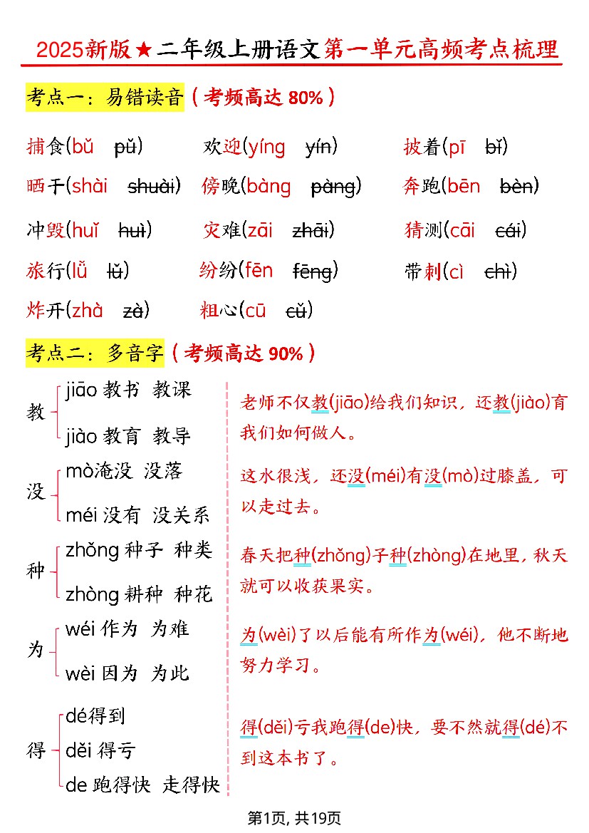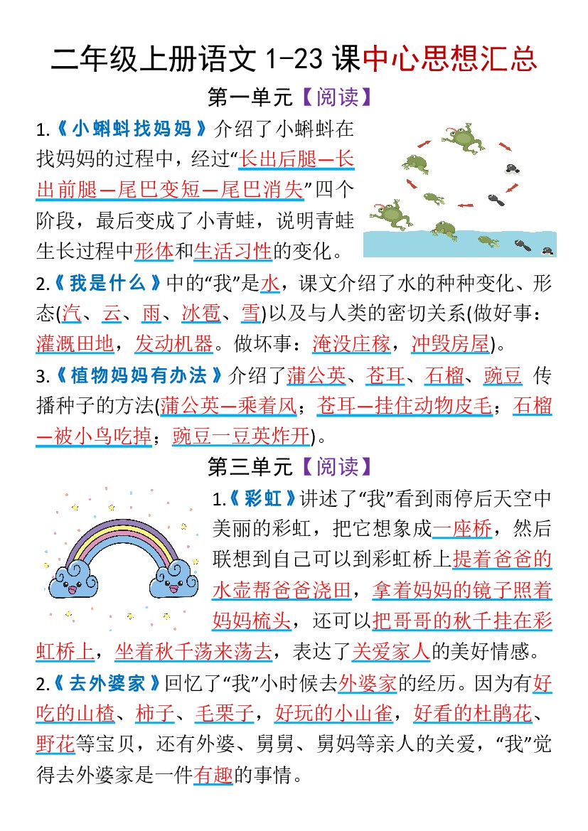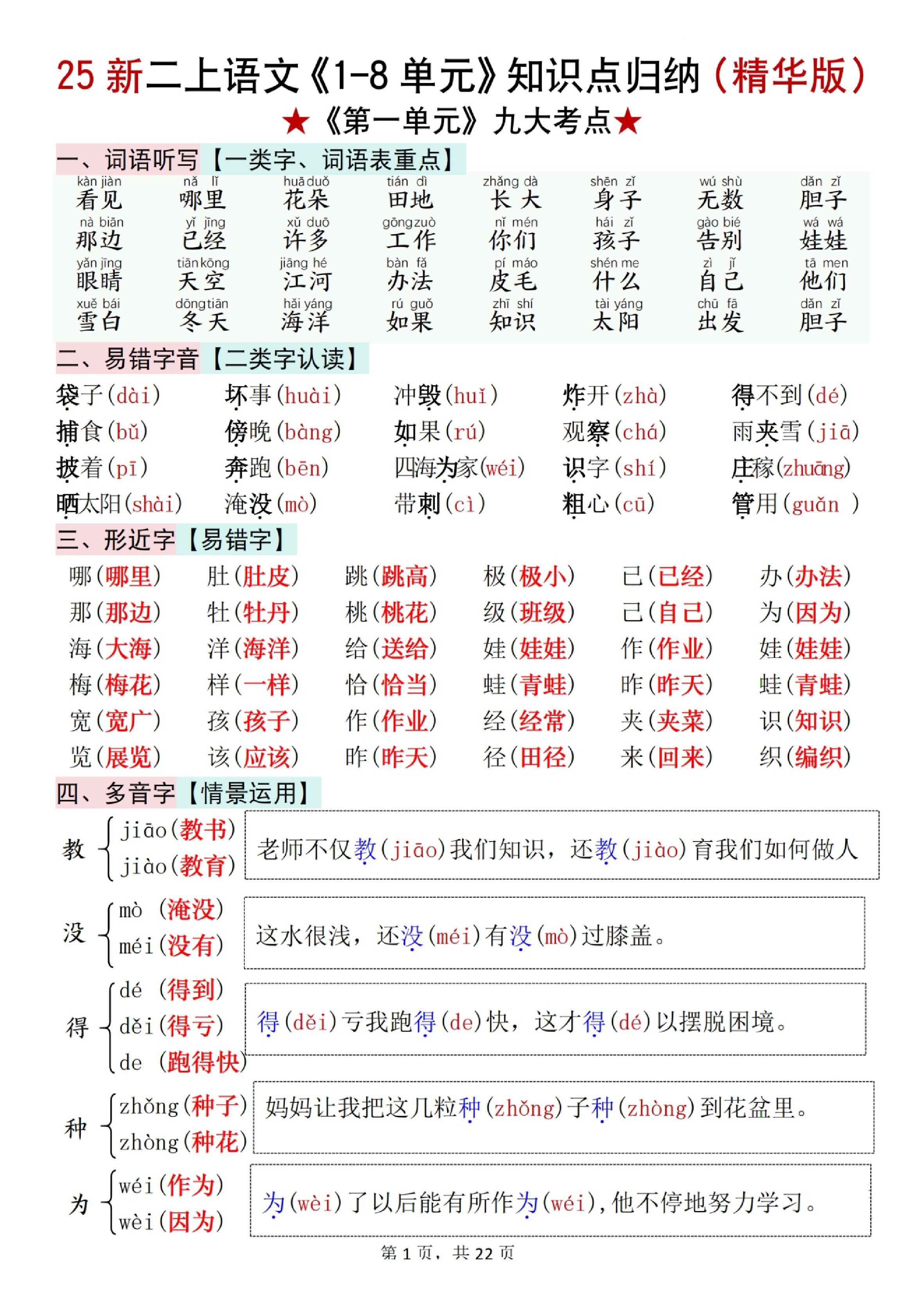 25新二年级(上)语文1-8单元知识点汇总(精华版)