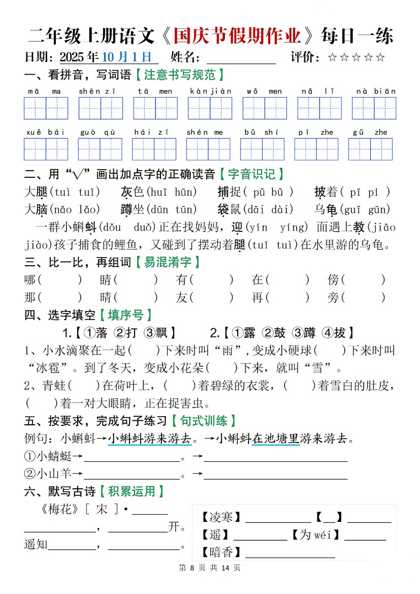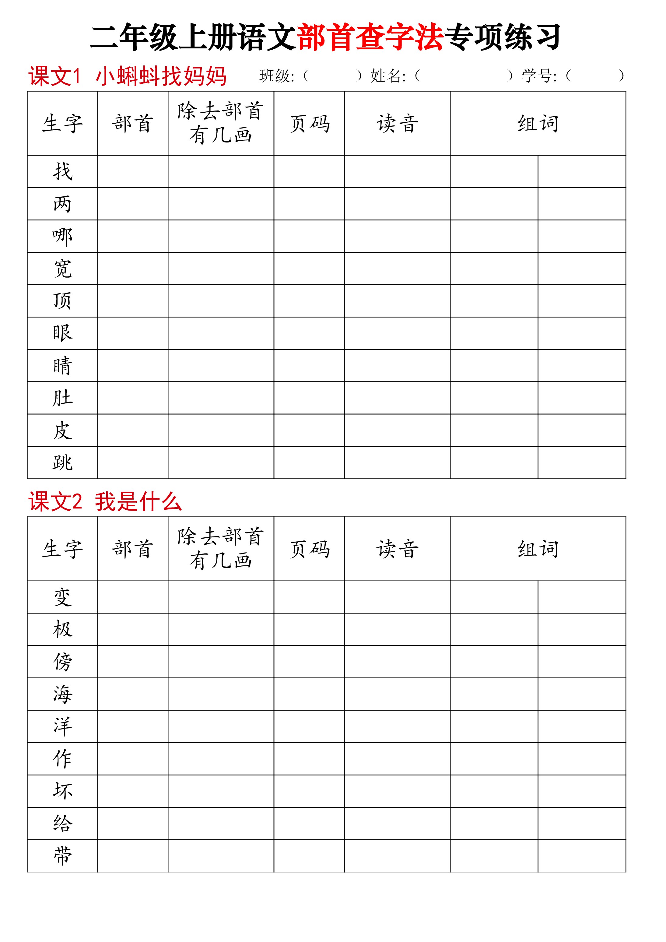 【语文】25秋二上同步部首查字法专项练习14页【部首】