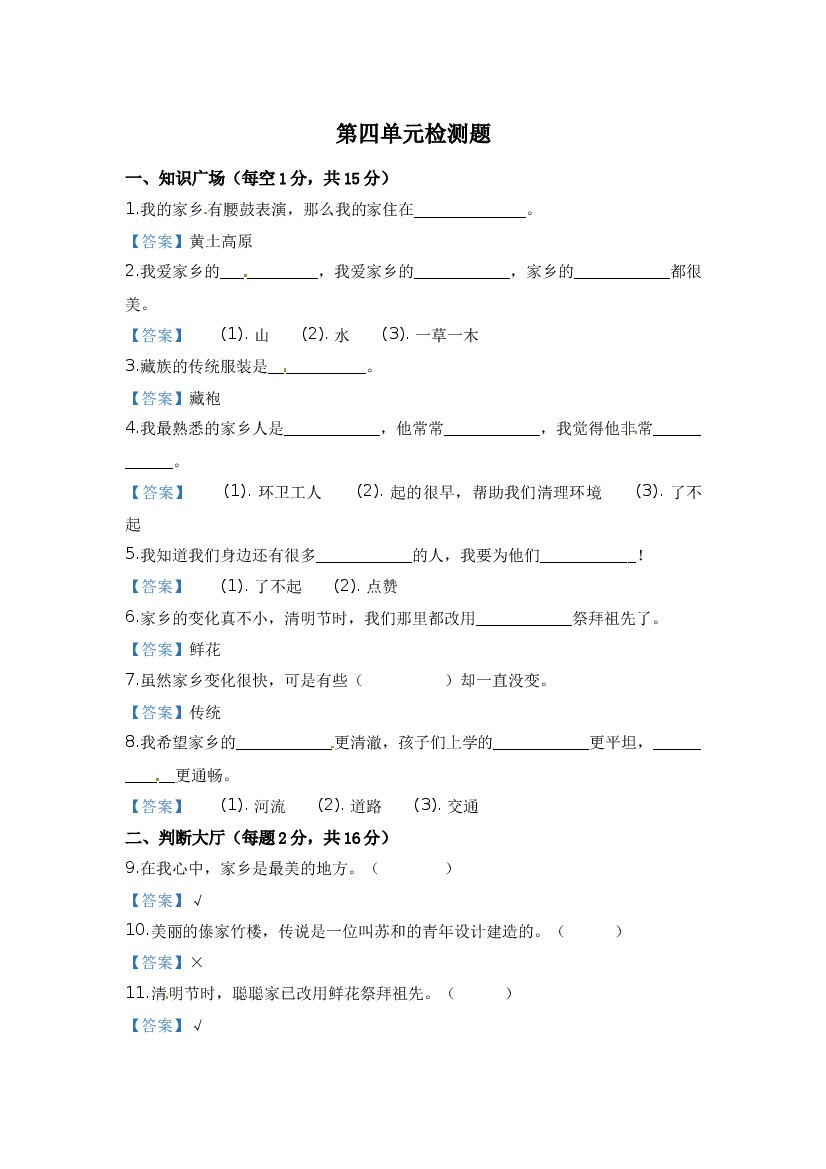 第四单元 我们生活的地方(含答案)部编版道德与法治二年级上册单元测试-