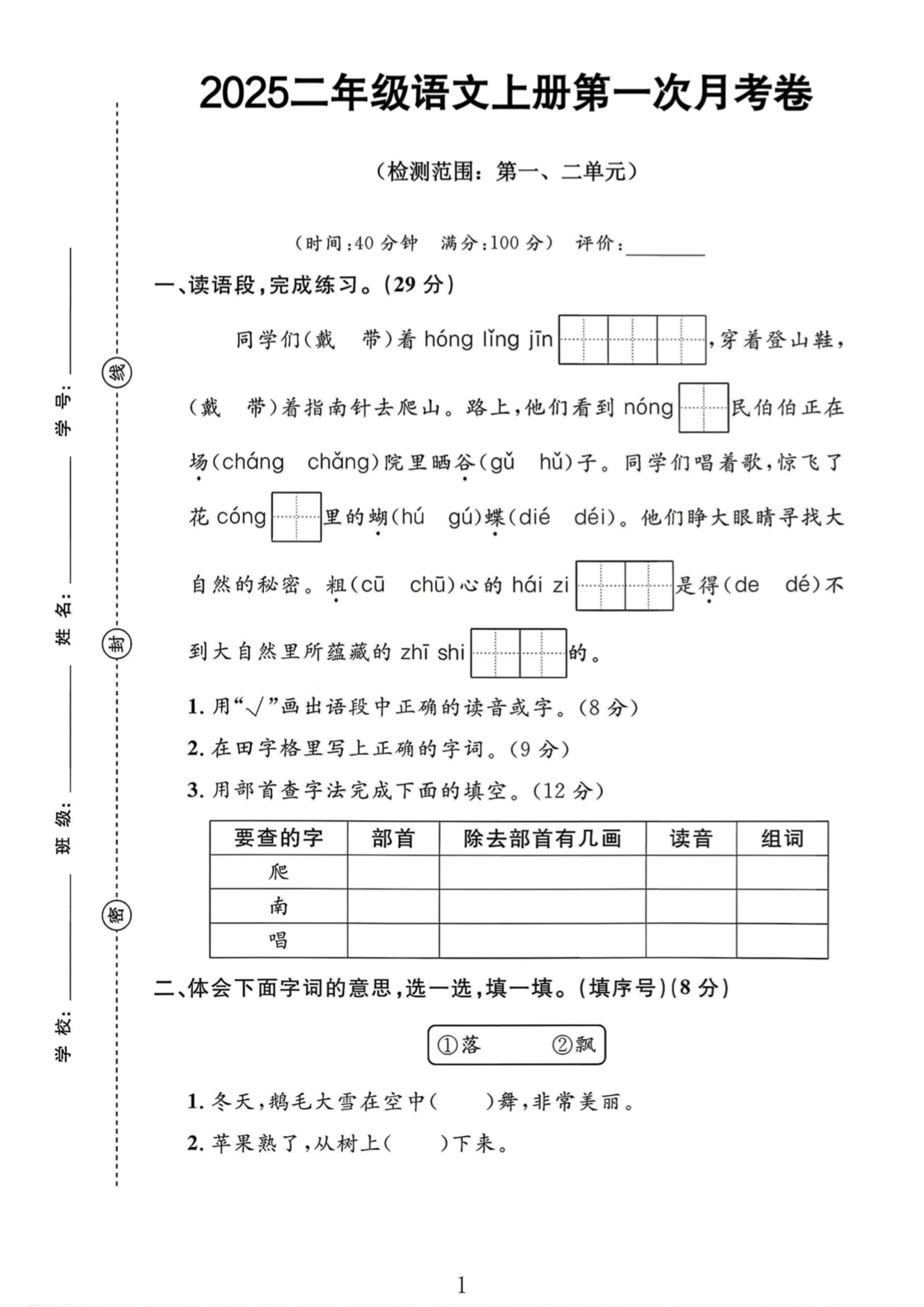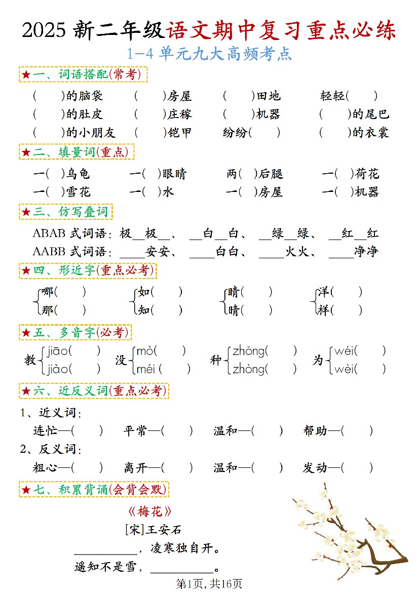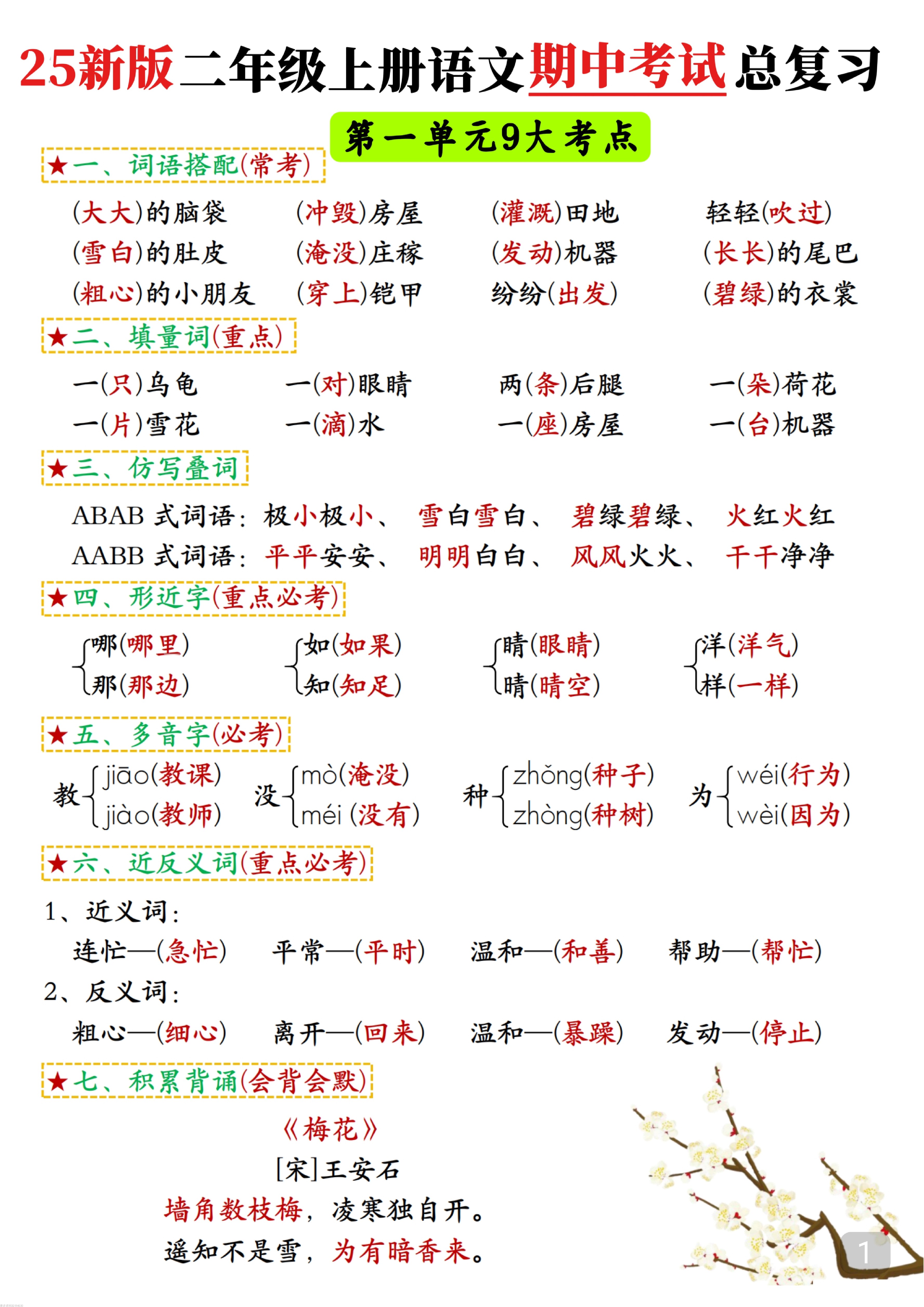 【2025秋新版】二年级语文上册必考 量词专项练习,孩子掌握起来!