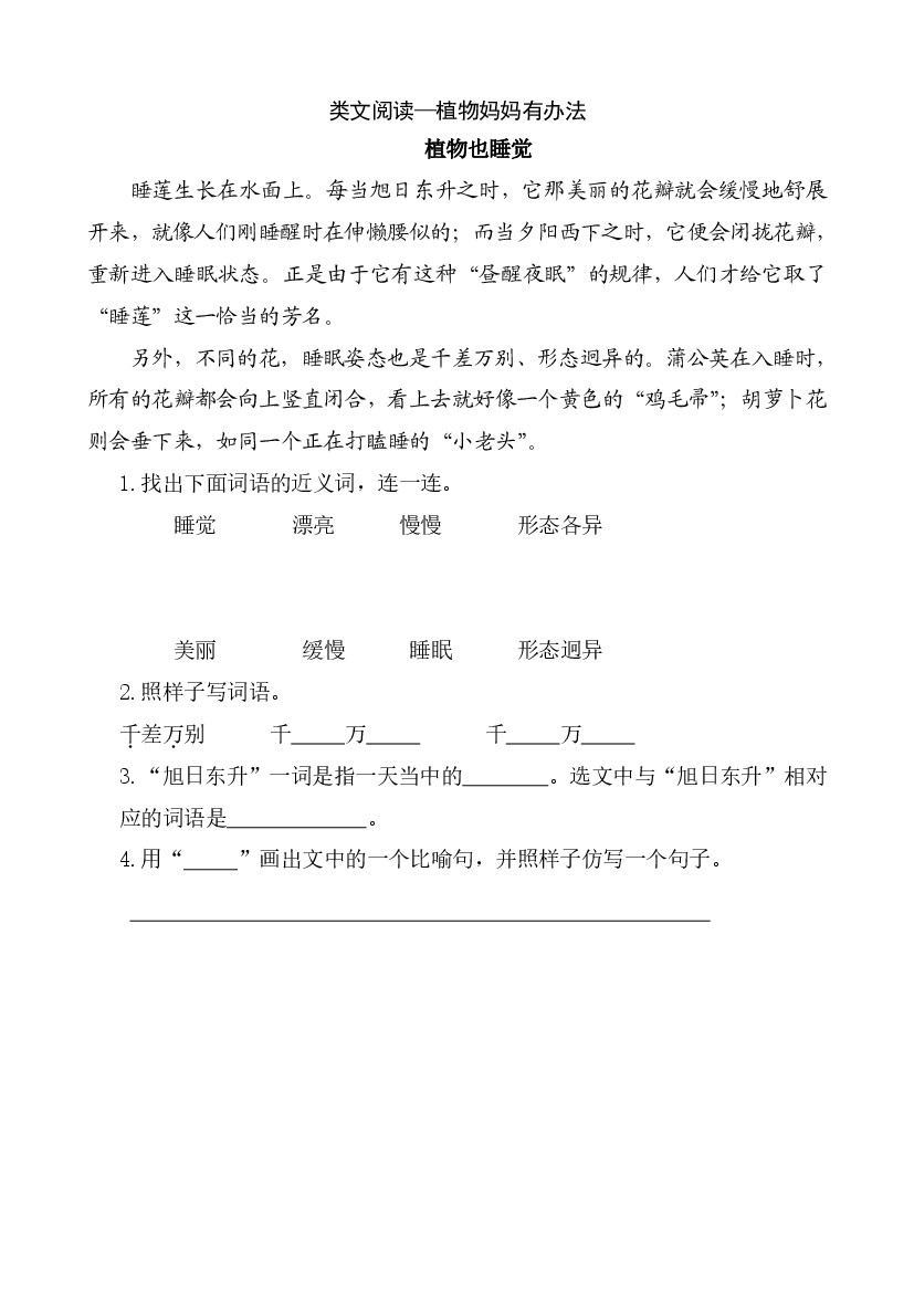 二年级(上)语文 类文阅读—植物妈妈有办法